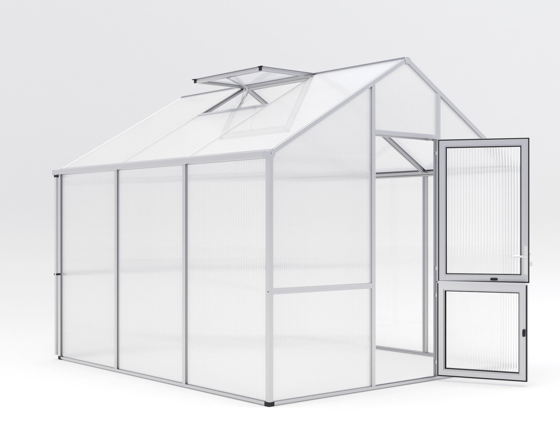 Gewächshaus Dahlie Sorgfältig gestaltet für leidenschaftliche Hobbygärtner – Das Gewächshaus Dahlie. Hier sind Innovation und Eleganz vereint, um die ultimative Umgebung für Ihre Pflanzen zu schaffen. Die Aluminiumkonstruktion vom Dahlie steht für außergewöhnliche Stabilität und Langlebigkeit. Durch die bewusste Entscheidung gegen Klammern und Kunststoffleisten wird nicht nur das ansprechende Erscheinungsbild bewahrt, sondern auch die Stabilität erhöht. Die raffinierte Belüftung von Dahlie wurde mit Effizienz im Sinn konzipiert. Die großzügige, geteilte Drehtür ermöglicht einen einfachen Zugang, während das geräumige Dachfenster mit automatischem Fensterheber für optimale Luftzirkulation sorgt. Ein rückseitiges Fenster mit Handaufsteller rundet das ausgeklügelte Belüftungssystem ab. Das Dahlie ist mit einer großzügigen Stehwandhöhe von 1,90 m ausgestattet, die ein komfortables Arbeiten in aufrechter Position ermöglicht. Vom Samen bis zur Ernte – Das Dahlie wird zu Ihrem verlässlichen Partner in jeder Wachstumsphase. Die 16 mm ISO-Hohlkammerplatten vom Dahlie sorgen für eine hervorragende Isolierung und schaffen optimale Bedingungen für das Pflanzenwachstum. Passen Sie Ihr Dahlie nach Ihrem Geschmack an. Wählen Sie zwischen den Farben “pressblank”, “tannengrün (RAL 6009)” und “anthrazit-grau (DB 703)” und verleihen Sie Ihrem Gewächshaus eine persönliche Note. Dahlie – Ihr privater Gartenraum mit unvergleichlicher Stehwandhöhe. Treten Sie ein und erleben Sie die Freude des Gärtnerns auf einem unerreichten Niveau. – Breite: 2,97, – Gewicht: 210, – Höhe: 2,76, – Länge: 3,23, – Material: Aluminium, – Produktart: Gewächshaus 1 Gewächshaus