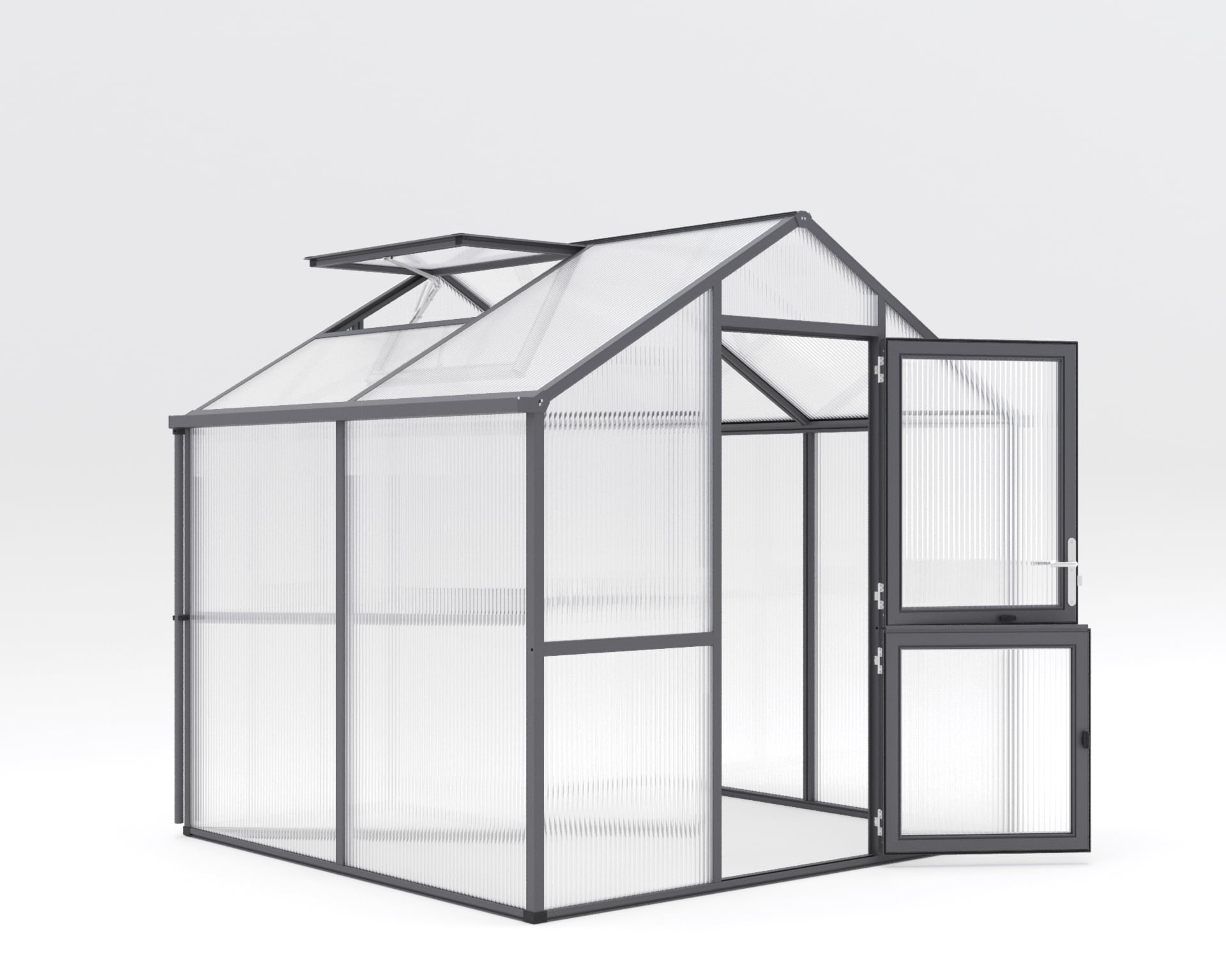 Gewächshaus Iris Iris ist mehr als nur ein Gewächshaus – es ist Ihr kreativer Raum, für Ihre Pflanzenanzucht und Pflege, in dem Sie Ihrer Gartenleidenschaft in vollem Umfang nachgehen können. Die Aluminiumkonstruktion des Gewächshauses Iris besticht durch ihre Stabilität und Langlebigkeit. Ohne störende Klammern und Kunststoffleisten strahlt es schlichte Eleganz aus. Dieses Gewächshaus wurde geschaffen, um Sie ganzjährig in jeder Pflanzphase zu begleiten. Dank der 16 mm ISO-Hohlkammerplatten sind Ihre Pflanzen auch bei kühleren Temperaturen gut geschützt. Die intelligente Belüftung vom Iris ermöglicht optimale Wachstumsbedingungen. Die breite, geteilte Drehtür bietet bequemen Zugang, während das großzügige Dachfenster mit automatischem Fensterheber für frische Luft sorgt. Das praktische Rückwandfenster mit Handaufsteller vervollständigt das ausgeklügelte Belüftungssystem. Die komfortable Stehwandhöhe von 1,60 m ermöglicht bequemes stehen und arbeiten in aufrechter Haltung. Von der Aussaat bis zur Ernte – Iris macht jede gärtnerische Aufgabe angenehm. Das Gewächshaus Iris bietet Ihnen nicht nur eine funktionale Umgebung. Wählen Sie zwischen den Farben “pressblank”, “tannengrün (RAL 6009)” und “anthrazit-grau (DB 703)” und verleihen Sie Ihrem Gewächshaus eine persönliche Note. Tauchen Sie ein und erleben Sie die Faszination des Gärtnerns in seiner schönsten Form. – Breite: 2,33, – Gewicht: 138, – Höhe: 2,26, – Länge: 2,17, – Material: Aluminium, – Produktart: Gewächshaus 1 Gewächshaus