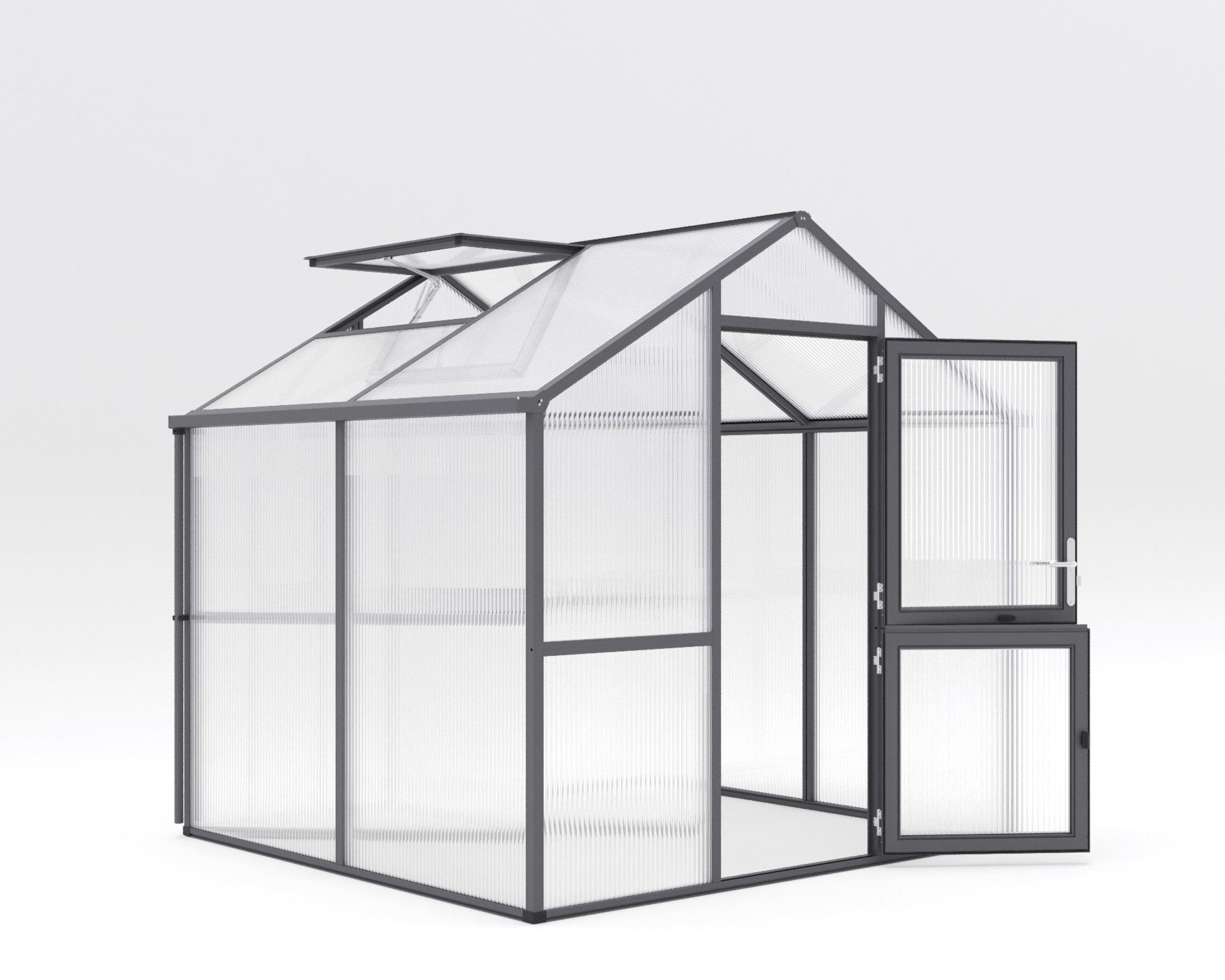 Iris ist mehr als nur ein Gewächshaus – es ist Ihr kreativer Raum, für Ihre Pflanzenanzucht und Pflege, in dem Sie Ihrer Gartenleidenschaft in vollem Umfang nachgehen können. Die Aluminiumkonstruktion des Gewächshauses Iris besticht durch ihre Stabilität und Langlebigkeit. Ohne störende Klammern und Kunststoffleisten strahlt es schlichte Eleganz aus. Dieses Gewächshaus wurde geschaffen, um Sie ganzjährig in jeder Pflanzphase zu begleiten. Dank der 16 mm ISO-Hohlkammerplatten sind Ihre Pflanzen auch bei kühleren Temperaturen gut geschützt. Die intelligente Belüftung vom Iris ermöglicht optimale Wachstumsbedingungen. Die breite, geteilte Drehtür bietet bequemen Zugang, während das großzügige Dachfenster mit automatischem Fensterheber für frische Luft sorgt. Das praktische Rückwandfenster mit Handaufsteller vervollständigt das ausgeklügelte Belüftungssystem. Die komfortable Stehwandhöhe von 1,60 m ermöglicht bequemes stehen und arbeiten in aufrechter Haltung. Von der Aussaat bis zur Ernte – Iris macht jede gärtnerische Aufgabe angenehm. Das Gewächshaus Iris bietet Ihnen nicht nur eine funktionale Umgebung. Wählen Sie zwischen den Farben “pressblank”, “tannengrün (RAL 6009)” und “anthrazit-grau (DB 703)” und verleihen Sie Ihrem Gewächshaus eine persönliche Note. Tauchen Sie ein und erleben Sie die Faszination des Gärtnerns in seiner schönsten Form.
