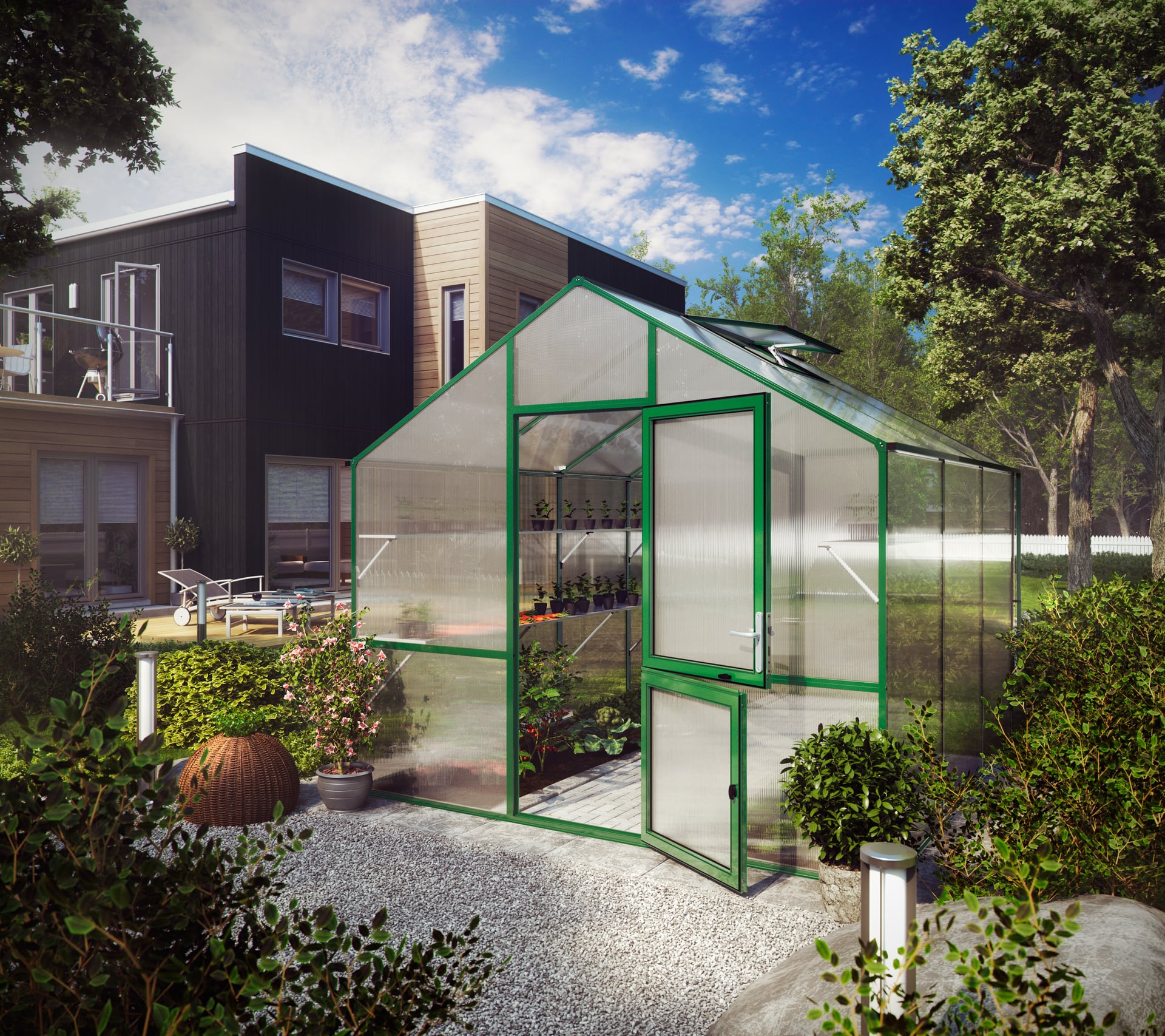 – Breite: 2,97, – Dach: Satteldach, – Farbe: moosgrün, – Fenster: 2,0, – Firsthöhe: 2680mm, – Fläche: 9,59m², – Höhe: 2,68, – Länge: 3,23, – Material: Aluminium, – Produktart: Gewächshaus, – Schließung: Profilzylinder, – Türart: Geteilte Drehtür (abschließbar)