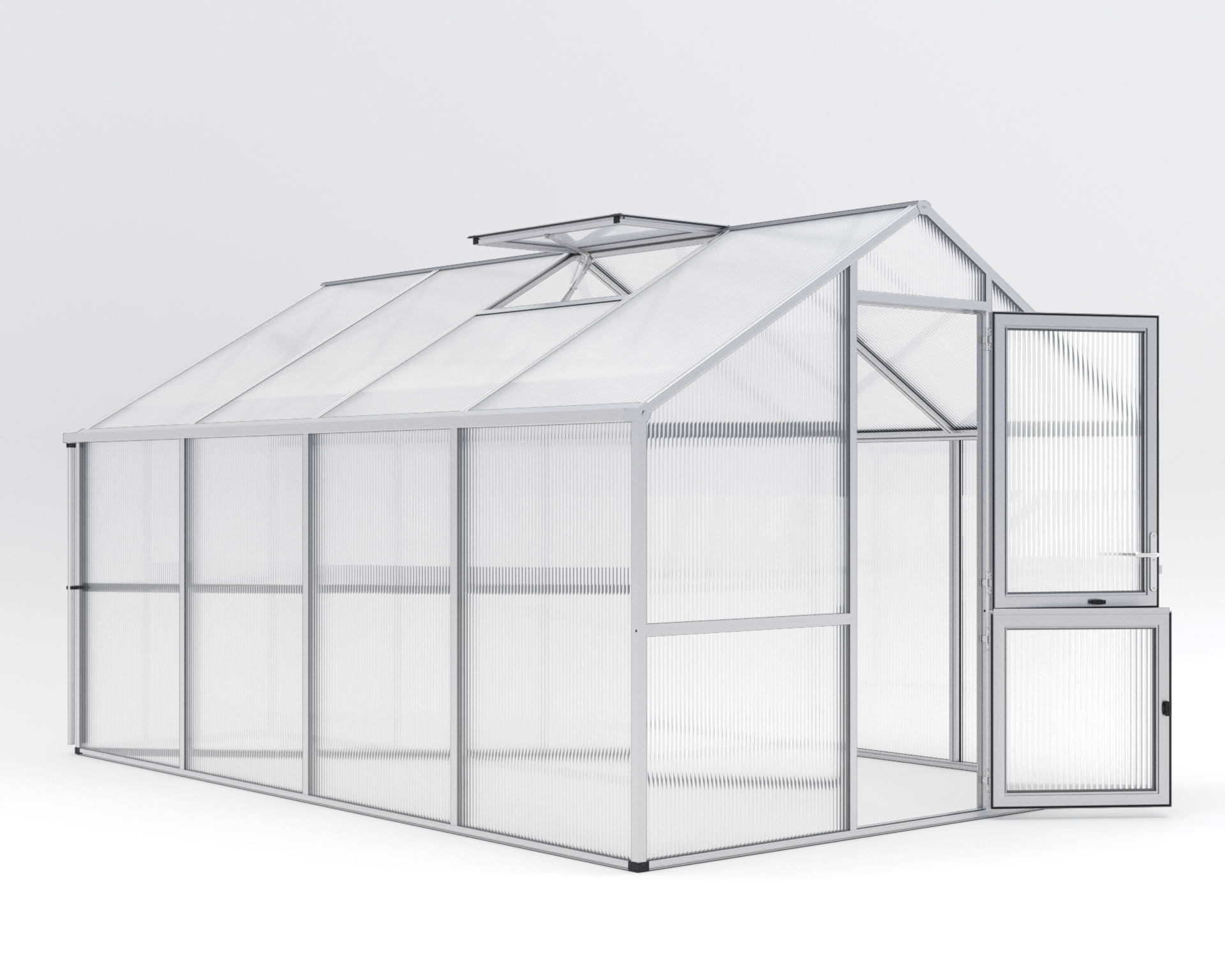 Gewächshaus Nelke Entwickelt für leidenschaftliche Hobbygärtner, kombiniert das Gewächshaus Nelke Innovation und Eleganz, um die perfekte Umgebung für Ihre Pflanzen zu schaffen. Die Aluminiumkonstruktion vom Nelke ist auf außergewöhnliche Stabilität und Langlebigkeit ausgelegt. Ganz bewusst wurden Klammern und Kunststoffleisten eliminiert, um nicht nur das ästhetische Erscheinungsbild zu bewahren, sondern auch die Stabilität zu stärken. Die durchdachte Belüftung des Nelke ist auf Effizienz ausgelegt. Die großzügige, geteilte Drehtür erlaubt komfortablen Zugang, während das geräumige Dachfenster mit automatischem Fensterheber für eine optimale Luftzirkulation sorgt. Ein rückseitiges Fenster mit Handaufsteller vervollständigt das wirkungsvolle Belüftungssystem. Nelke bietet Ihnen nicht nur ein Gewächshaus, sondern auch eine komfortable Arbeitshöhe, die das Gärtnern in aufrechter Position ermöglicht. Von der Aussaat bis zur Pflege Ihrer Pflanzen – Das Gewächshaus Nelke ist Ihr zuverlässiger Partner in jeder gärtnerischen Phase. Die 16 mm ISO-Hohlkammerplatten vom Nelke sorgen für eine erstklassige Isolierung und schaffen ideale Bedingungen für das Wachstum Ihrer Pflanzen, sogar bei kühleren Temperaturen. Passen Sie Ihr Nelke nach Ihrem Stil an. Wählen Sie zwischen den Farben “pressblank”, “tannengrün (RAL 6009)” und “anthrazit-grau (DB 703)” und verleihen Sie Ihrem Gewächshaus eine persönliche Note. Nelke – Ihr privater Gartenraum. Treten Sie ein und erleben Sie die Freude des Gärtnerns auf einem neuen Niveau. – Breite: 2,97, – Gewicht: 225, – Höhe: 2,44, – Länge: 4,29, – Material: Aluminium, – Produktart: Gewächshaus 1 Gewächshaus