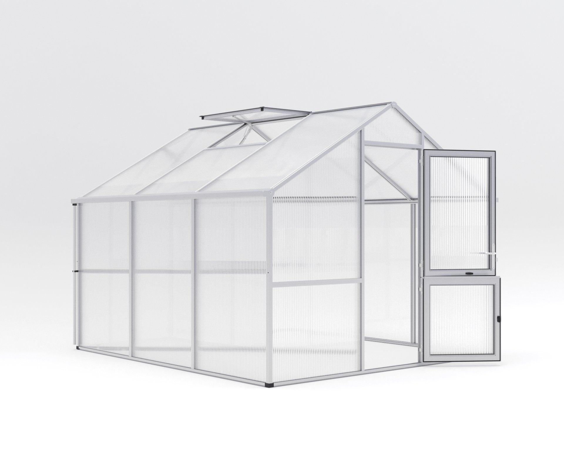 Gewächshaus Nelke Entwickelt für leidenschaftliche Hobbygärtner, kombiniert das Gewächshaus Nelke Innovation und Eleganz, um die perfekte Umgebung für Ihre Pflanzen zu schaffen. Die Aluminiumkonstruktion vom Nelke ist auf außergewöhnliche Stabilität und Langlebigkeit ausgelegt. Ganz bewusst wurden Klammern und Kunststoffleisten eliminiert, um nicht nur das ästhetische Erscheinungsbild zu bewahren, sondern auch die Stabilität zu stärken. Die durchdachte Belüftung des Nelke ist auf Effizienz ausgelegt. Die großzügige, geteilte Drehtür erlaubt komfortablen Zugang, während das geräumige Dachfenster mit automatischem Fensterheber für eine optimale Luftzirkulation sorgt. Ein rückseitiges Fenster mit Handaufsteller vervollständigt das wirkungsvolle Belüftungssystem. Nelke bietet Ihnen nicht nur ein Gewächshaus, sondern auch eine komfortable Arbeitshöhe, die das Gärtnern in aufrechter Position ermöglicht. Von der Aussaat bis zur Pflege Ihrer Pflanzen – Das Gewächshaus Nelke ist Ihr zuverlässiger Partner in jeder gärtnerischen Phase. Die 16 mm ISO-Hohlkammerplatten vom Nelke sorgen für eine erstklassige Isolierung und schaffen ideale Bedingungen für das Wachstum Ihrer Pflanzen, sogar bei kühleren Temperaturen. Passen Sie Ihr Nelke nach Ihrem Stil an. Wählen Sie zwischen den Farben “pressblank”, “tannengrün (RAL 6009)” und “anthrazit-grau (DB 703)” und verleihen Sie Ihrem Gewächshaus eine persönliche Note. Nelke – Ihr privater Gartenraum. Treten Sie ein und erleben Sie die Freude des Gärtnerns auf einem neuen Niveau. – Breite: 2,97, – Gewicht: 189, – Höhe: 2,44, – Länge: 3,23, – Material: Aluminium, – Produktart: Gewächshaus 1 Gewächshaus
