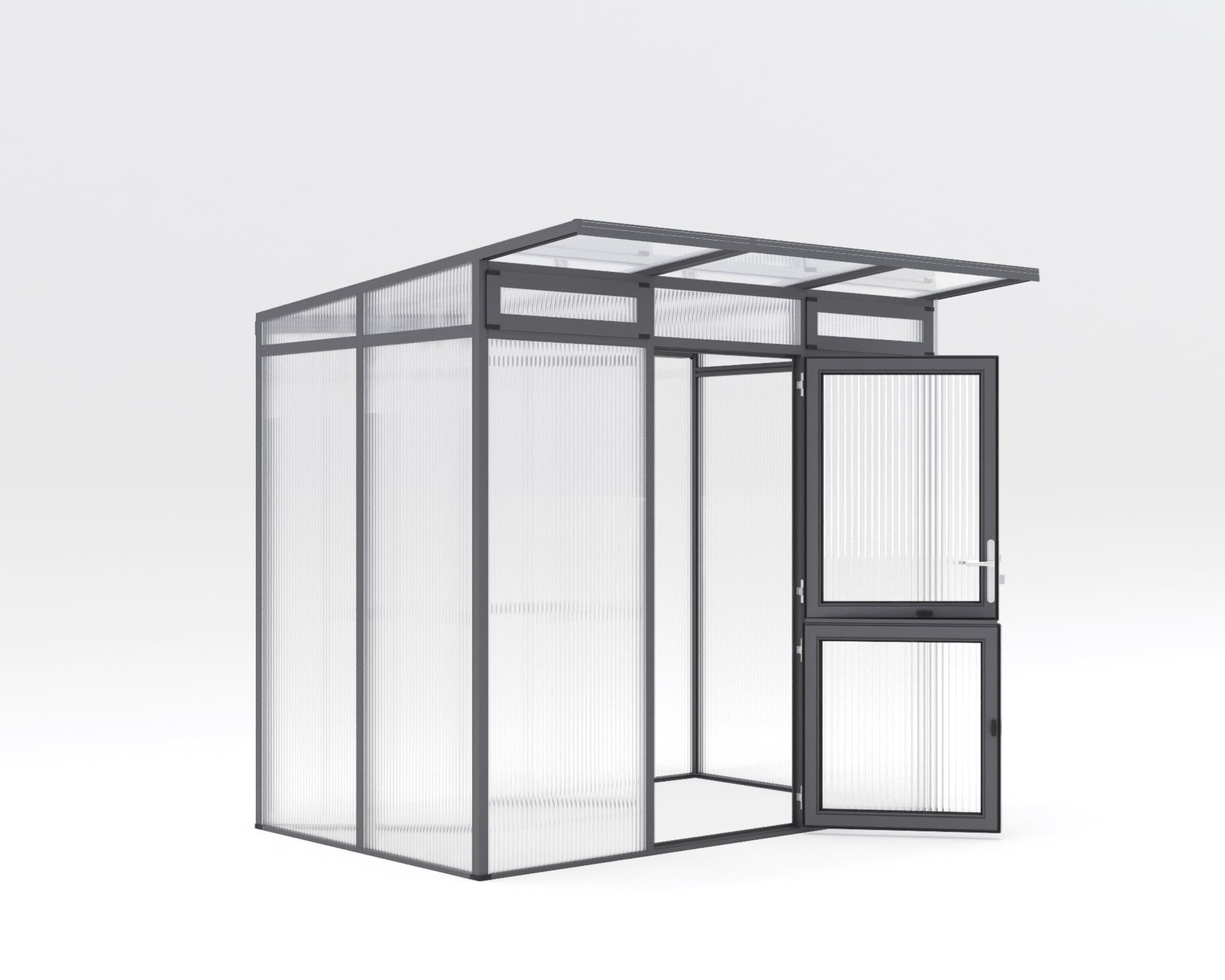 Gewächshaus Santini Das Aluminium-Gewächshaus Santini II – small vereint Eleganz und Funktionalität, um Ihre Gartenarbeit auf das nächste Level zu bringen. Mit seinem modernen Pultdach-Design und den hochwertigen 16 mm ISO-Hohlkammerplatten bietet es nicht nur eine stilvolle Optik, sondern auch eine hervorragende Isolierung, die perfekte Bedingungen für Ihre Pflanzen schafft. Ausgestattet mit einer breiten, geteilten Drehtür ermöglicht es einen bequemen Zugang und erleichtert das Tragen von Pflanzgefäßen. Zudem verfügt das Gewächshaus über zwei vordere Aufstellfenster, die eine optimale Belüftung gewährleisten und die Temperatur- und Feuchtigkeitsregulierung verbessern. Das Rückwandfenster mit Handaufsteller bietet zusätzliche Flexibilität, um die Luftzirkulation nach Ihren Bedürfnissen anzupassen. Die Schneelast des Dachs beträgt 125 kg/m², was Ihnen zusätzliche Sicherheit in den winterlichen Monaten bietet. Unser Fokus auf Qualität und Langlebigkeit spiegelt sich in jedem Detail des Santini II wider. Die sorgfältig ausgewählten Materialien gewährleisten eine robuste Konstruktion, die den Elementen standhält und eine langjährige Nutzung ermöglicht. Egal ob Sie langjähriger Hobbygärtner sind oder grad am Beginn Ihrer Gartenleidenschaft stehen, das Santini II ist die ideale Wahl für anspruchsvolle Gartenliebhaber. Erwecken Sie Ihre Gartenideen zum Leben und schaffen Sie mit dem Santini II optimale Wachstumsbedingungen für Ihre Pflanzen. Entdecken Sie die Verbindung von Ästhetik und Funktionalität, die Ihr Gartenprojekt auf ein neues Niveau hebt. – Breite: 2,33, – Gewicht: 140, – Höhe: 2,15, – Länge: 1,5, – Material: Aluminium, – Produktart: Gewächshaus 1 Gewächshaus