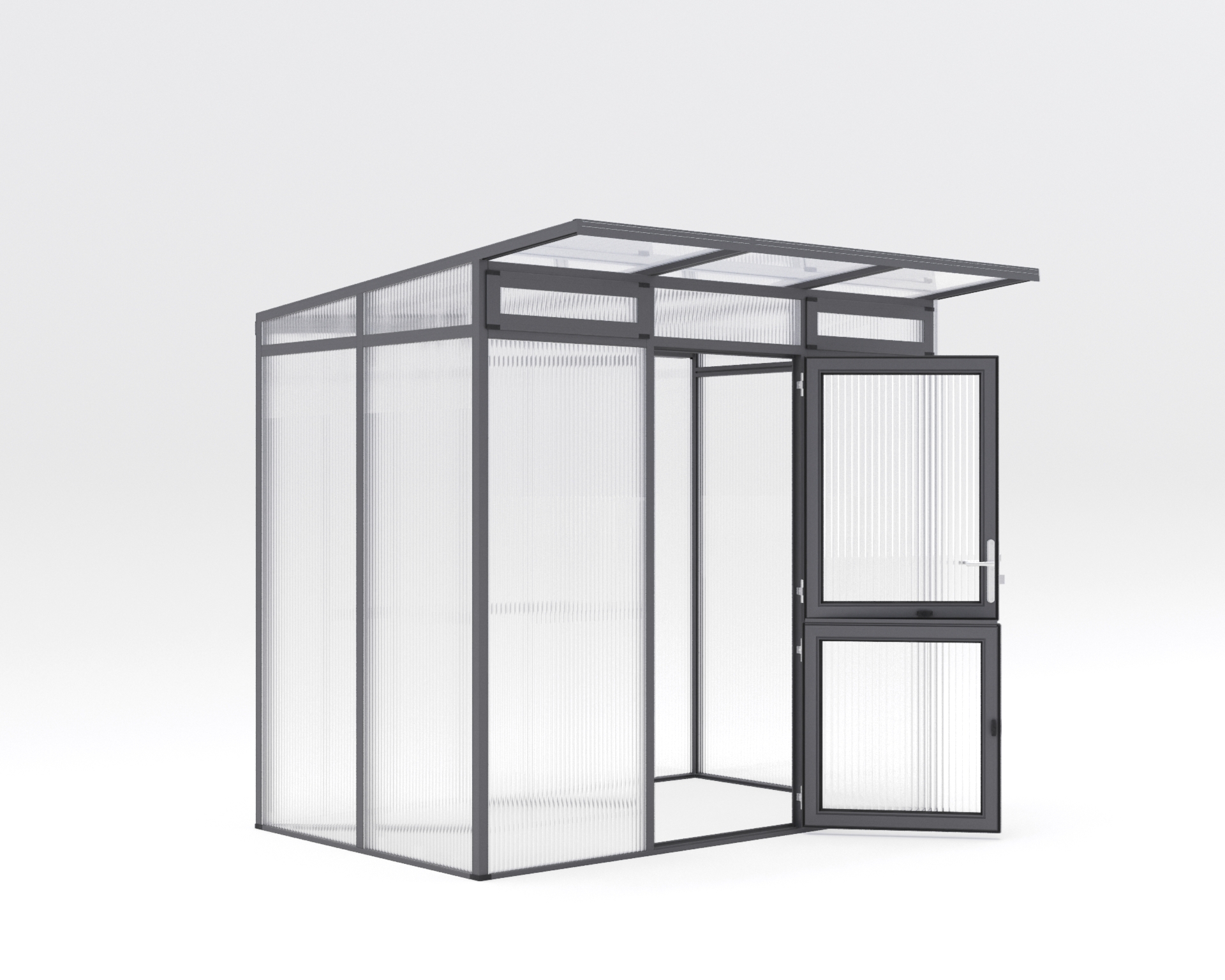Das Aluminium-Gewächshaus Santini II – small vereint Eleganz und Funktionalität, um Ihre Gartenarbeit auf das nächste Level zu bringen. Mit seinem modernen Pultdach-Design und den hochwertigen 16 mm ISO-Hohlkammerplatten bietet es nicht nur eine stilvolle Optik, sondern auch eine hervorragende Isolierung, die perfekte Bedingungen für Ihre Pflanzen schafft. Ausgestattet mit einer breiten, geteilten Drehtür ermöglicht es einen bequemen Zugang und erleichtert das Tragen von Pflanzgefäßen. Zudem verfügt das Gewächshaus über zwei vordere Aufstellfenster, die eine optimale Belüftung gewährleisten und die Temperatur- und Feuchtigkeitsregulierung verbessern. Das Rückwandfenster mit Handaufsteller bietet zusätzliche Flexibilität, um die Luftzirkulation nach Ihren Bedürfnissen anzupassen. Die Schneelast des Dachs beträgt 125 kg/m², was Ihnen zusätzliche Sicherheit in den winterlichen Monaten bietet. Unser Fokus auf Qualität und Langlebigkeit spiegelt sich in jedem Detail des Santini II wider. Die sorgfältig ausgewählten Materialien gewährleisten eine robuste Konstruktion, die den Elementen standhält und eine langjährige Nutzung ermöglicht. Egal ob Sie langjähriger Hobbygärtner sind oder grad am Beginn Ihrer Gartenleidenschaft stehen, das Santini II ist die ideale Wahl für anspruchsvolle Gartenliebhaber. Erwecken Sie Ihre Gartenideen zum Leben und schaffen Sie mit dem Santini II optimale Wachstumsbedingungen für Ihre Pflanzen. Entdecken Sie die Verbindung von Ästhetik und Funktionalität, die Ihr Gartenprojekt auf ein neues Niveau hebt.