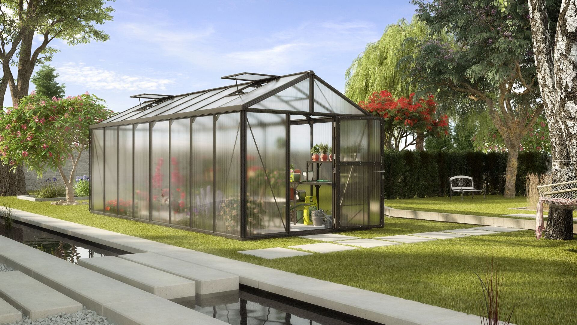 Profi-Gärtnern zu Hause: Auf über 15 m² bietet der König unter den Vitavia Gewächshäusern alles für das effiziente Gärtnern – ohne Kompromisse.