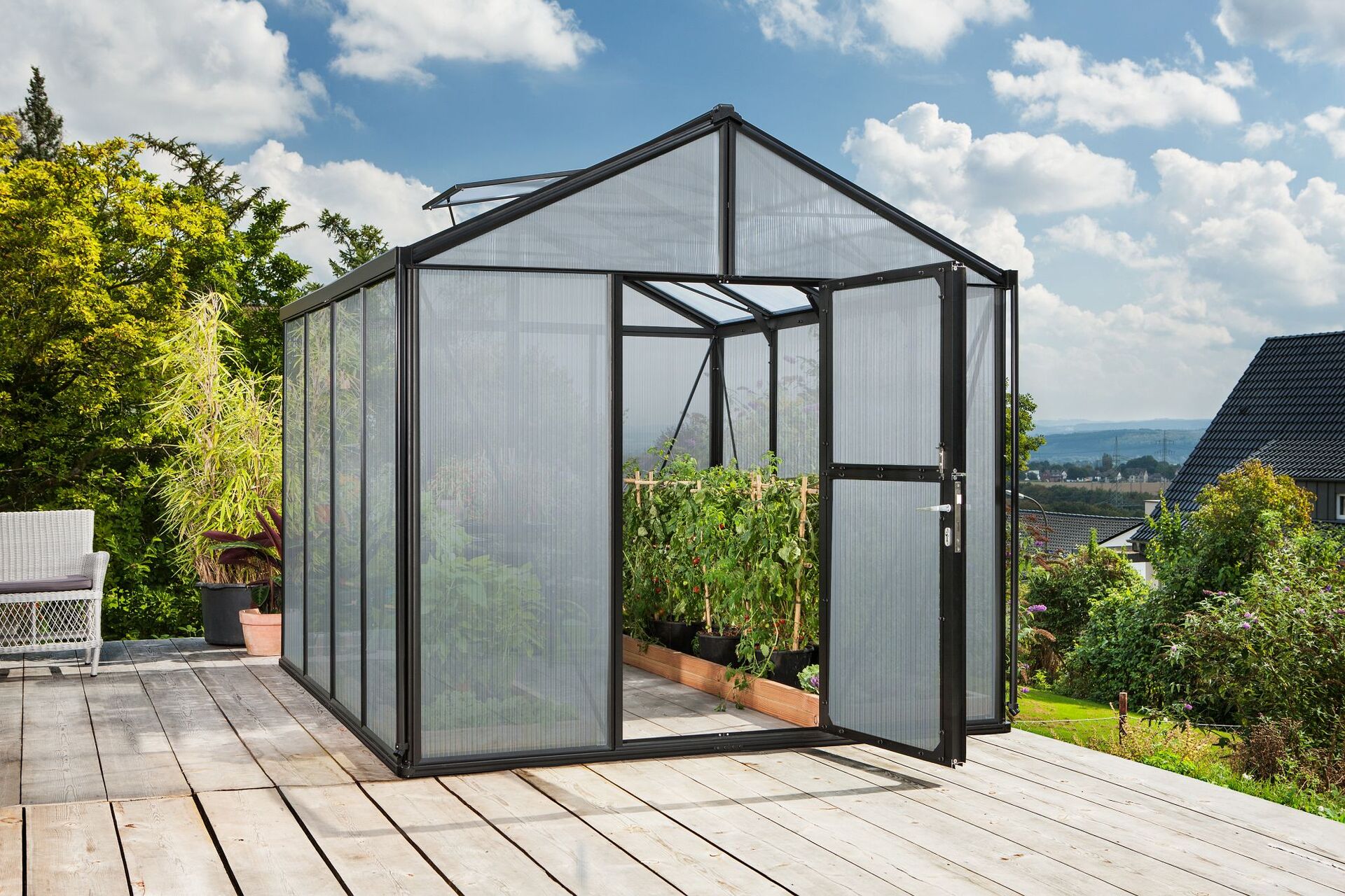 Profi-Gärtnern zu Hause: Auf über 15 m² bietet der König unter den Vitavia Gewächshäusern alles für das effiziente Gärtnern – ohne Kompromisse.