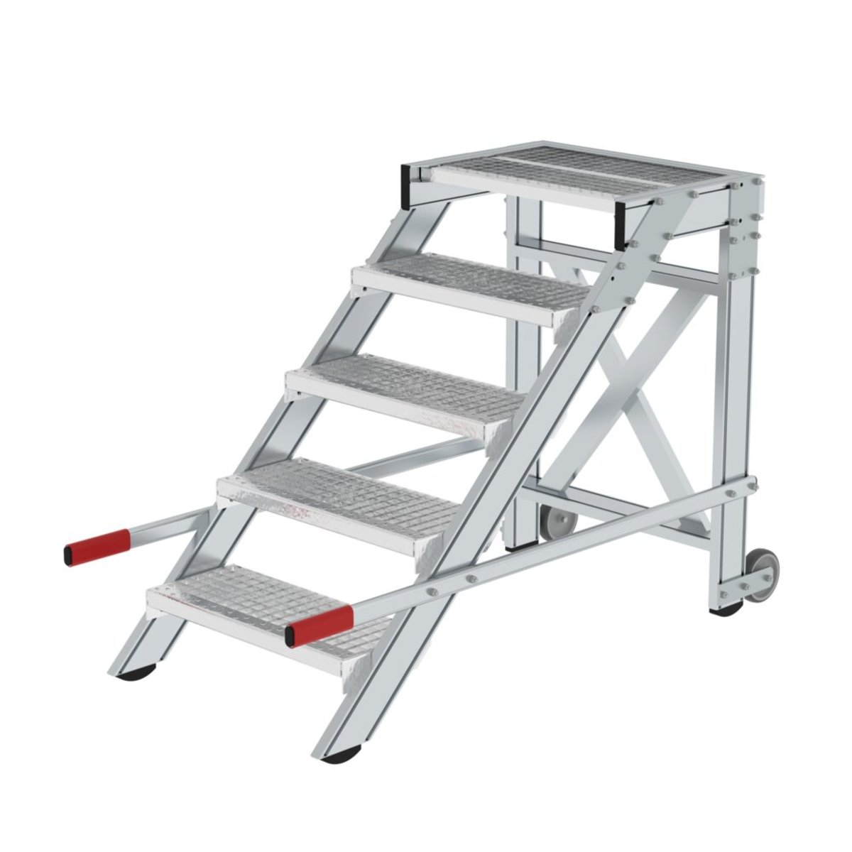 Günzburger Steigtechnik Arbeitspodest fahrbar, Stufenbreite 600 mm, Stahl-Gitterrost 5 Stufen