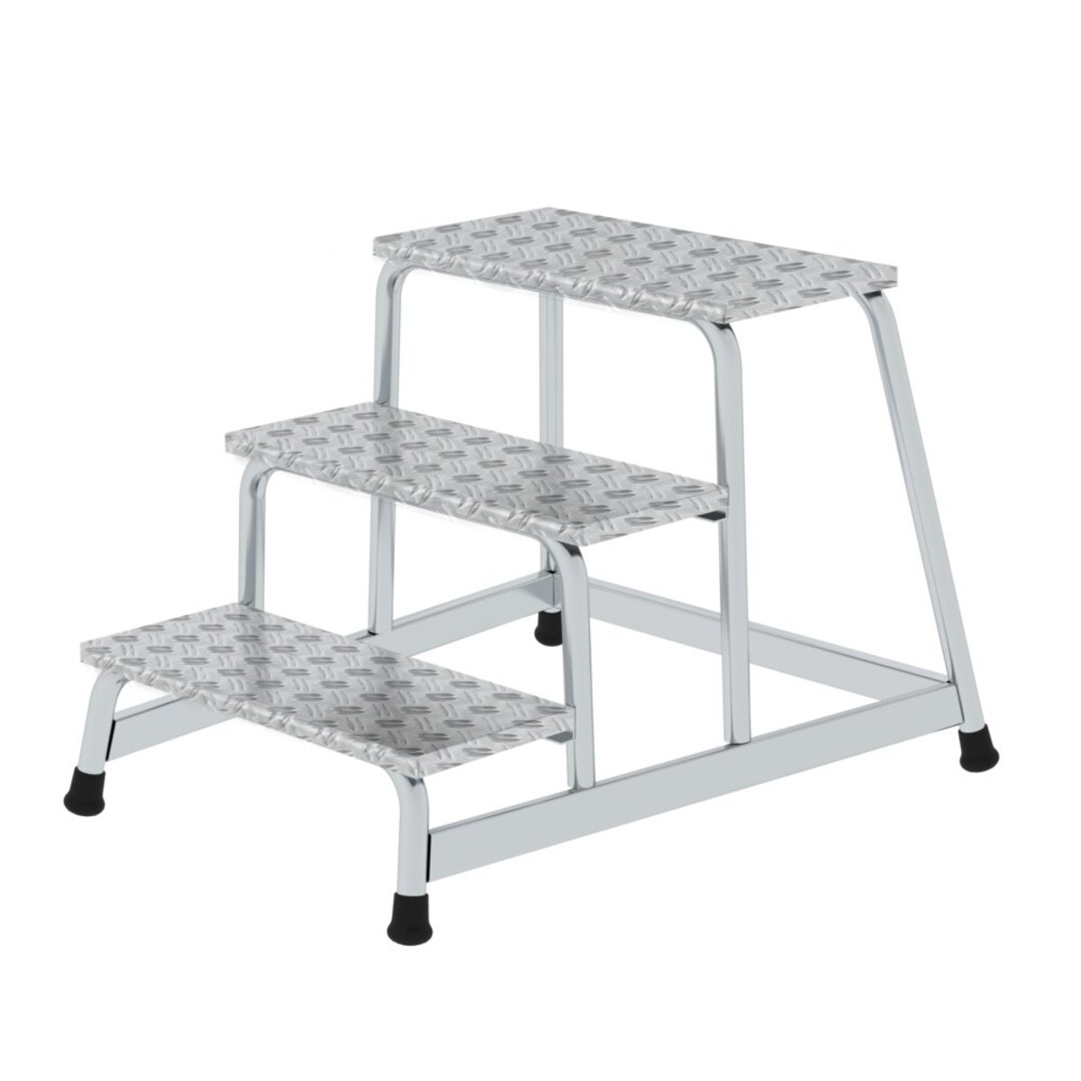 Arbeitspodest aus Aluminium Stabile, verschweißte Rohrkonstruktion 220 mm tiefe Stufen aus Aluminium-Warzenblech für einen sicheren Stand Obere Trittfläche: 550 x 300 mm Rutschfeste Kunststoffschuhe Stufenabstand 200 mm Maximale Belastung: 150 kgInformationen zu Nachhaltigkeitskriterien Unternehmenszertifizierung: ISO 9001 Unternehmenszertifizierung: EN 1090 Unternehmenszertifizierung: EcoVadis RoHS REACH Die MUNK Group arbeitet mit einem Code of Conduct Das Lieferkettengesetz findet aufgrund unserer Größe keine Anwendung Die verwendeten Materialien sind der technischen Spezifikation aufgeführt Ressourcenschonende Herstellung: eigene Photovoltaik-Anlagen Energieeffizienter Verbrauch bei der Herstellung: LED-Beleuchtung Reparaturfähigkeit, Langlebigkeit und Qualität: 15 Jahre Garantie auf Serienprodukte made in Germany Recyclingfähigkeit: Unsere Produkte bestehen zum größten Teil aus …