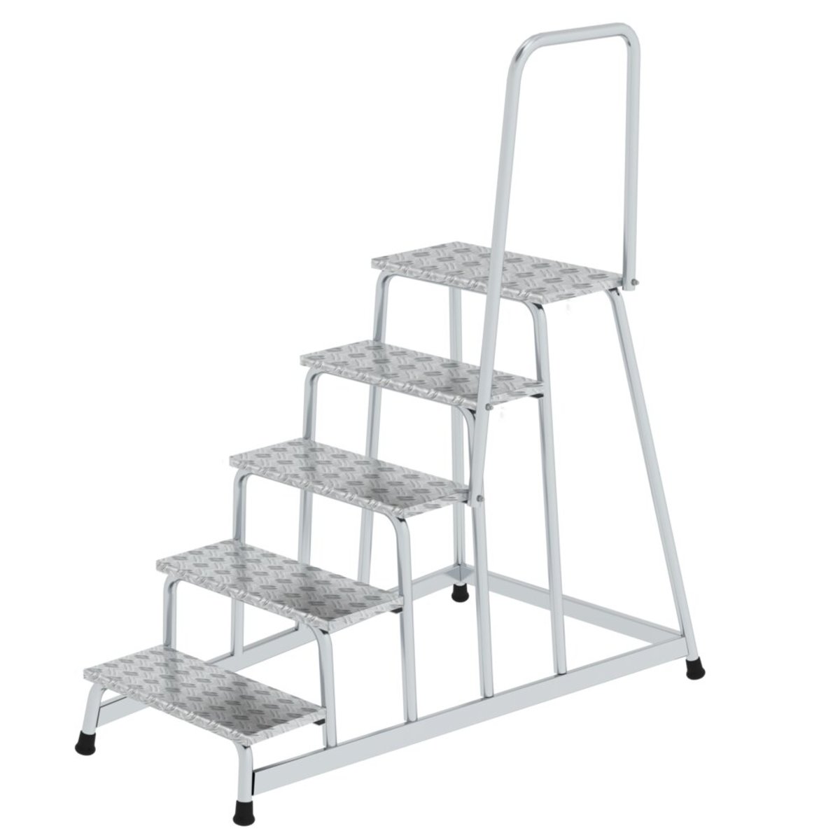 Arbeitspodest aus Aluminium Stabile, verschweißte Rohrkonstruktion 220 mm tiefe Stufen aus Aluminium-Warzenblech für einen sicheren Stand Obere Trittfläche: 550 x 300 mm Rutschfeste Kunststoffschuhe Erhöhte Sicherheit durch einseitigen Handlauf (Höhe: 600 mm). Dieser liegt lose bei und ist einfach anschraubbar (Bohrungen serienmäßig rechts) Stufenabstand 200 mm Maximale Belastung: 150 kgInformationen zu Nachhaltigkeitskriterien Unternehmenszertifizierung: ISO 9001 Unternehmenszertifizierung: EN 1090 Unternehmenszertifizierung: EcoVadis RoHS REACH Die MUNK Group arbeitet mit einem Code of Conduct Das Lieferkettengesetz findet aufgrund unserer Größe keine Anwendung Die verwendeten Materialien sind der technischen Spezifikation aufgeführt Ressourcenschonende Herstellung: eigene Photovoltaik-Anlagen Energieeffizienter Verbrauch bei der Herstellung: LED-Beleuchtung Reparaturfähigkeit, Lan…