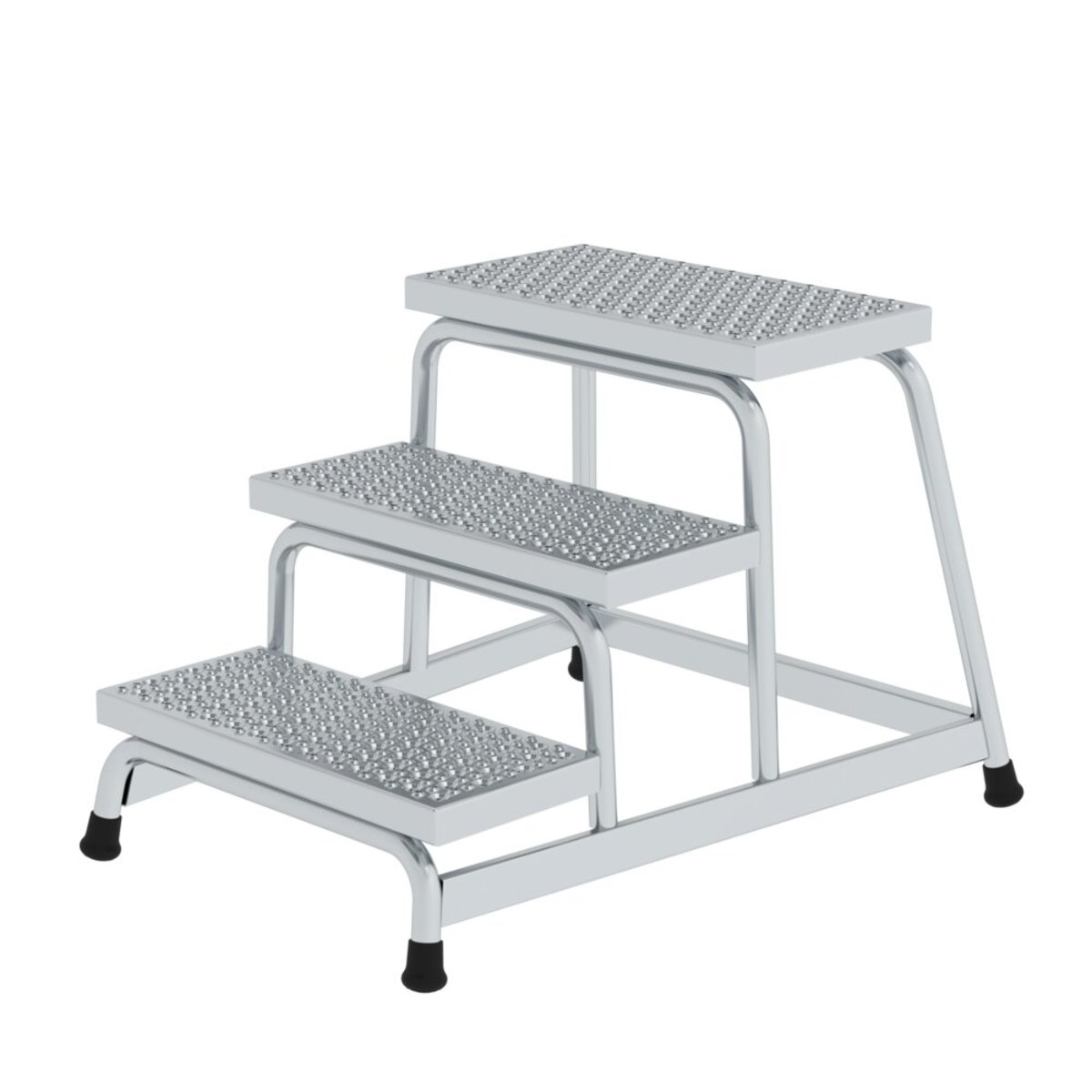 Arbeitspodest aus Aluminium Stabile, verschweißte Rohrkonstruktion 220 mm tiefe Stufen aus Aluminium-Lochblech mit zertifizierter Rutschhemmung R 13 Obere Trittfläche: 550 x 300 mm Rutschfeste Kunststoffschuhe Stufenabstand 200 mm Maximale Belastung: 150 kgInformationen zu Nachhaltigkeitskriterien Unternehmenszertifizierung: ISO 9001 Unternehmenszertifizierung: EN 1090 Unternehmenszertifizierung: EcoVadis RoHS REACH Die MUNK Group arbeitet mit einem Code of Conduct Das Lieferkettengesetz findet aufgrund unserer Größe keine Anwendung Die verwendeten Materialien sind der technischen Spezifikation aufgeführt Ressourcenschonende Herstellung: eigene Photovoltaik-Anlagen Energieeffizienter Verbrauch bei der Herstellung: LED-Beleuchtung Reparaturfähigkeit, Langlebigkeit und Qualität: 15 Jahre Garantie auf Serienprodukte made in Germany Recyclingfähigkeit: Unsere Produkte bestehen zum größte…