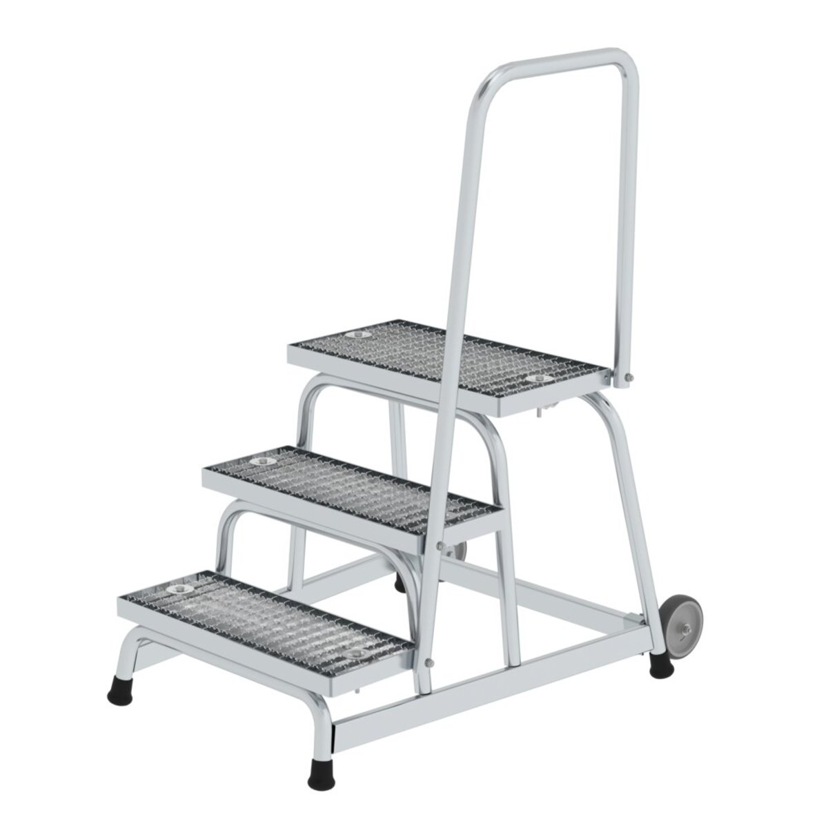Günzburger Steigtechnik Arbeitspodest starr Stahl-Gitterrost mit Rollen und Handlauf 3 Stufen