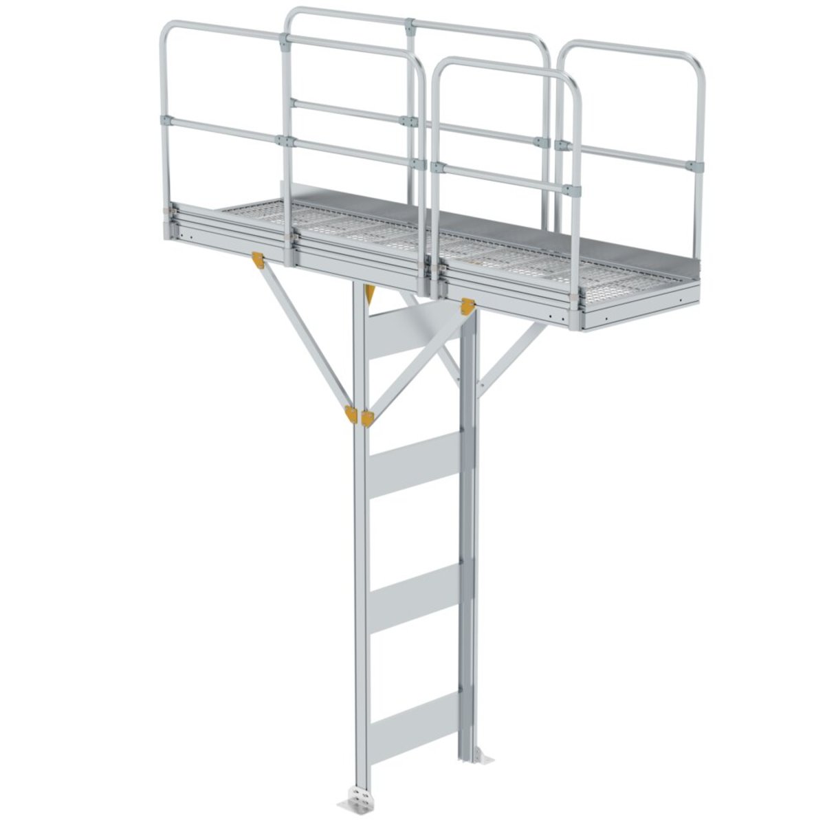 Zur sicheren und schnellen Befreiung von LKWs und Nutzfahrzeugen von Eis- und Schneelasten. Auch ideal für Reparaturen an LKW-Planen und Aufbauten nutzbar. Wartungsfreie Konstruktion aus korrisionsbeständigen Aluminium-Profilen und Verbindungsteilen aus Edelstahl für den stationären Aufbau Individuelle Gesamtlängen und Konfigurationen möglich dank effizienter Modulbauweise Stufen- und Plattformbeläge aus rutschsicherem Stahl-Gitterrost (R12) für alle Wetterlagen. Das Lochraster verhindert zudem das Liegenbleiben von Schmutz, Schnee und Nässe Der Zugang zum Laufsteg erfolgt komfortabel über eine 45° Treppe mit beidseitigen Handläufen und einer selbst-schließenden Sicherungstüre Beidseitige Geländer mit Fuß- und Knieleiste sorgen für eine hohe Arbeitssicherheit (Höhe: 1.100 mm) Einfache Montage durch Lieferung in vormontierten Baugruppen inklusive Montageanleitung Die Ausführung berück…