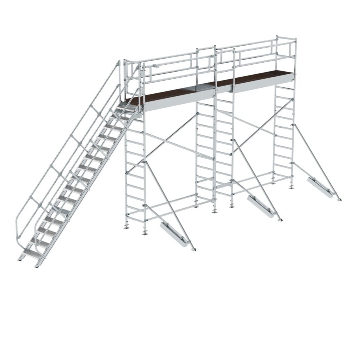 Zur sicheren und schnellen Befreiung von LKWs und Nutzfahrzeugen von Eis- und Schneelasten. Auch ideal für Reparaturen an LKW-Planen und Aufbauten nutzbar. Wartungsfreies Gerüstsystem aus Aluminium mit Auslegern für den stationären Aufbau Kosteneffizient und modular erweiterbar Langlebige und witterungsbeständige Stufen- und Plattformbeläge Der Zugang zum Laufsteg erfolgt komfortabel über eine 45° Treppe mit beidseitigen Handläufen und einer selbst-schließenden Sicherungstüre Beidseitige Geländer mit Fuß- und Knieleiste sorgen für eine hohe Arbeitssicherheit (Höhe: 1.100 mm) Einfache Montage durch Lieferung in Baugruppen inklusive Montageanleitung Die Ausführung berücksichtigt DIN EN ISO 1004 sowie 14122-2 und -3 Maximale Belastung: 2,0 kN/m², Stufenbelastung: 150 kgInformationen zu Nachhaltigkeitskriterien Unternehmenszertifizierung: ISO 9001 Unternehmenszertifizierung: EN 1090 Unte…