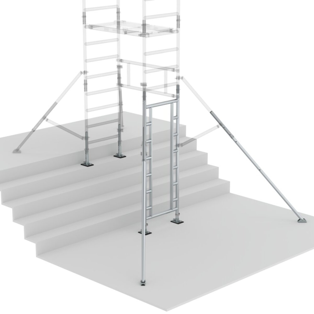 Erweiterungset für den FlexxTower und den FlexxTower SG aus stabilem Aluminium- Rundrohr und geschweißten Rahmenbauteilen Zum Aufbau des Ein-Personen-Gerüstes in Treppenhäusern Aufsteckrahmen mit Durchstiegslösung für einen bequemen Einstieg Vier stufenlos verstellbare Stellfüße mit bodenschonenden Gummiplatten Zwei lange, teleskopierbare Dreiecksausleger als Umbausatz für einen sicheren StandInformationen zu Nachhaltigkeitskriterien Unternehmenszertifizierung: ISO 9001 Unternehmenszertifizierung: EN 1090 Unternehmenszertifizierung: EcoVadis RoHS REACH Die MUNK Group arbeitet mit einem Code of Conduct Das Lieferkettengesetz findet aufgrund unserer Größe keine Anwendung Die verwendeten Materialien sind der technischen Spezifikation aufgeführt Ressourcenschonende Herstellung: eigene Photovoltaik-Anlagen Energieeffizienter Verbrauch bei der Herstellung: LED-Beleuchtung Reparaturfähigkei…