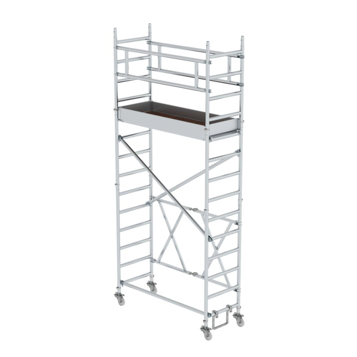 Rollgerüst aus stabilem Aluminium-Rundrohr mit geschweißten Rahmenteilen Klapprahmen aus Rechteckrohr-Holmen mit selbstarretierenden Scharnieren Platzsparend bei Transport und Lagerung Vier Lenkrollen Ø 125 mm mit zentrischer Lasteinleitung und Spindeln Trittsichere Plattform für festen Stand Aluminium Bordbretter und Geländerrahmen mit integrierter Knieleiste zur Absturzsicherung (ab Plattformhöhe 2,8 m) Einfacher Auf- und Abbau ohne Werkzeug Unterschiedliche Plattformbreiten erhältlich (0,75/1,35 m) Plattformlängen 2,45 m und 3,0 m auf Anfrage Arbeitshöhen bis 13,8 m GS-geprüft nach DIN EN 1004 Lastklasse/Gerüstgruppe 2: 1,5 kN/m²Informationen zu Nachhaltigkeitskriterien Unternehmenszertifizierung: ISO 9001 Unternehmenszertifizierung: EN 1090 Unternehmenszertifizierung: EcoVadis RoHS REACH Die MUNK Group arbeitet mit einem Code of Conduct Das Lieferkettengesetz findet aufgrund unse…