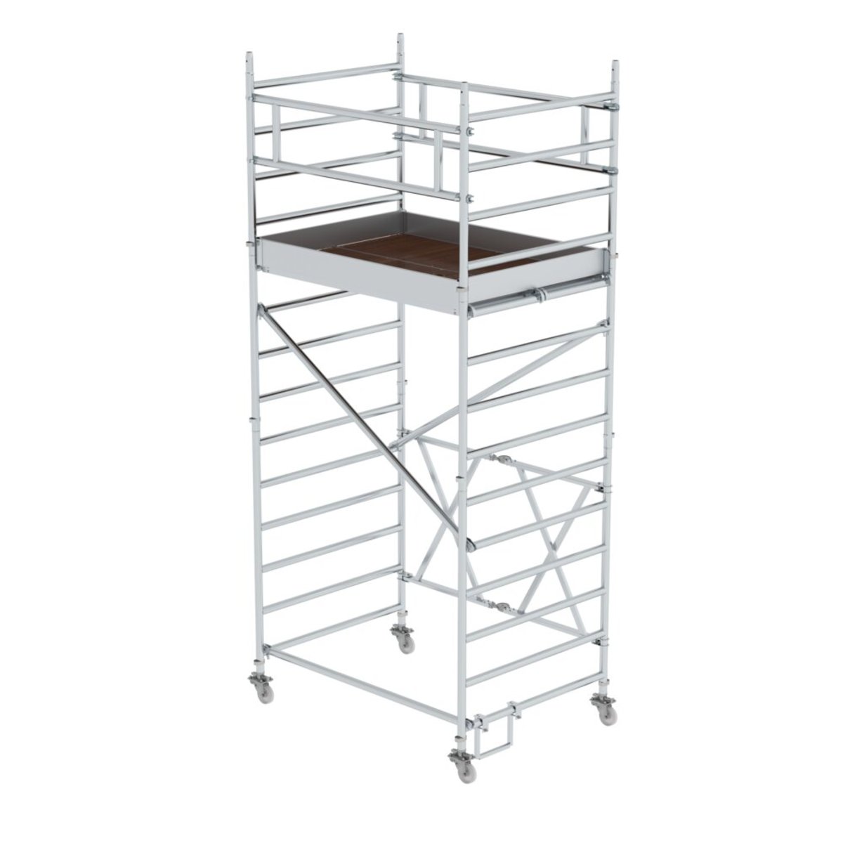Rollgerüst aus stabilem Aluminium-Rundrohr mit geschweißten Rahmenteilen Klapprahmen aus Rechteckrohr-Holmen mit selbstarretierenden Scharnieren Platzsparend bei Transport und Lagerung Vier Lenkrollen Ø 125 mm mit zentrischer Lasteinleitung und Spindeln Trittsichere Plattform für festen Stand Aluminium Bordbretter und Geländerrahmen mit integrierter Knieleiste zur Absturzsicherung (ab Plattformhöhe 2,8 m) Einfacher Auf- und Abbau ohne Werkzeug Unterschiedliche Plattformbreiten erhältlich (0,75/1,35 m) Plattformlängen 2,45 m und 3,0 m auf Anfrage Arbeitshöhen bis 13,8 m GS-geprüft nach DIN EN 1004 Lastklasse/Gerüstgruppe 2: 1,5 kN/m²Informationen zu Nachhaltigkeitskriterien Unternehmenszertifizierung: ISO 9001 Unternehmenszertifizierung: EN 1090 Unternehmenszertifizierung: EcoVadis RoHS REACH Die MUNK Group arbeitet mit einem Code of Conduct Das Lieferkettengesetz findet aufgrund unse…