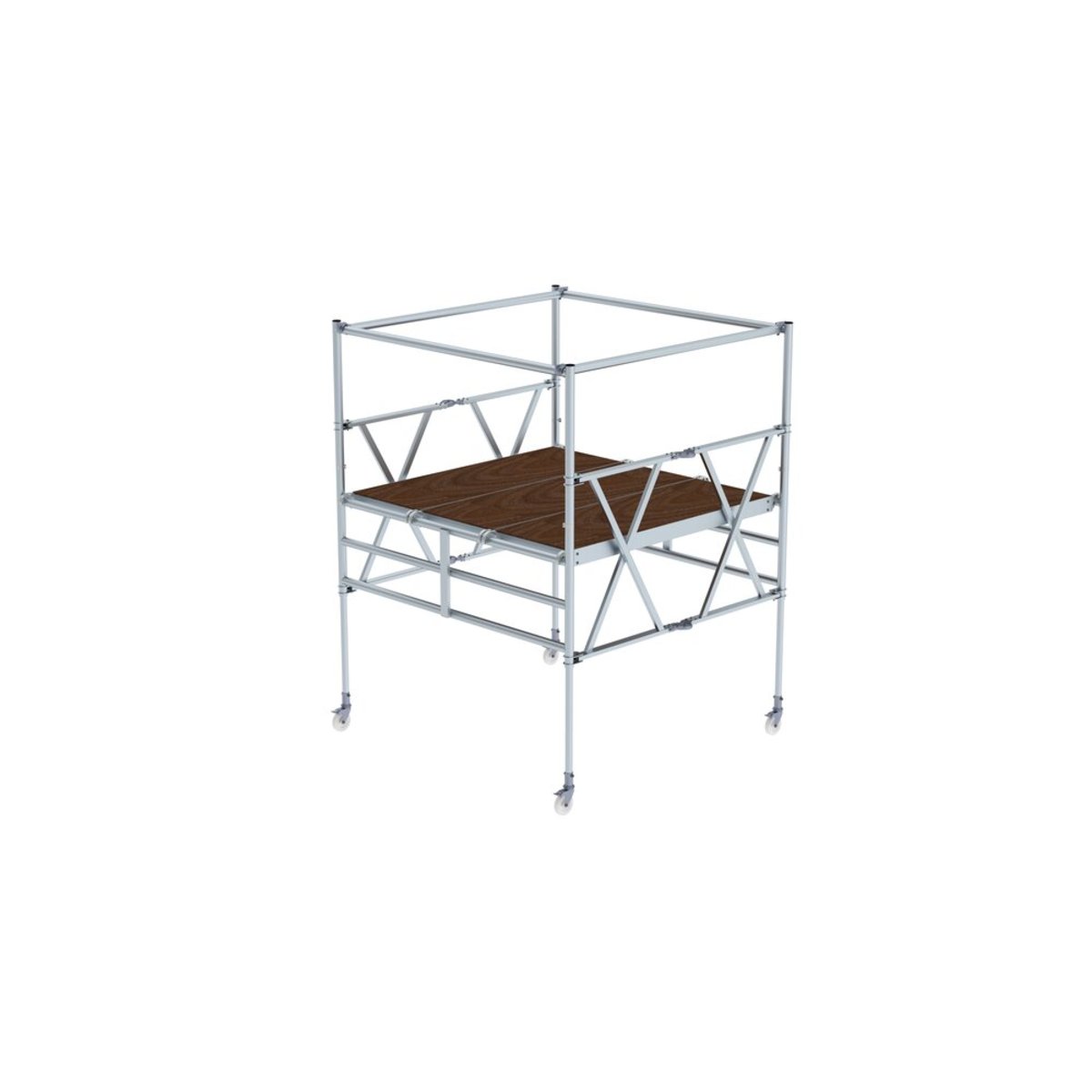 Rollgerüst aus stabilem Aluminium-Rundrohr mit geschweißten Rahmenteilen Doppel-Klapprahmen aus Rechteckrohr-Holmen mit selbstarretierenden Scharnieren Höhenverstellbare Standrohre zur Regulierung der Plattformhöhe im 150 mm Abstand von 0,53 m bis 1,63 m Großformatige Arbeitsfläche mit 3,25 m² Platzsparend bei Transport und Lagerung Vier Lenkrollen Ø 125 mm mit Feststellern Einfacher Auf- und Abbau ohne Werkzeug Optionale Aufstiegsleiter mit selbstschließenden Schnellverschlüssen für den bequemen Zu- und Abgang Arbeitshöhen bis 3,48 m Baumuster geprüft Lastklasse/Gerüstgruppe 2: 1,5 kN/m²Informationen zu Nachhaltigkeitskriterien Unternehmenszertifizierung: ISO 9001 Unternehmenszertifizierung: EN 1090 Unternehmenszertifizierung: EcoVadis RoHS REACH Die MUNK Group arbeitet mit einem Code of Conduct Das Lieferkettengesetz findet aufgrund unserer Größe keine Anwendung Die verwendeten Mat…