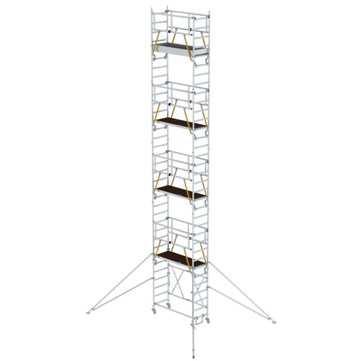 Rollgerüst aus stabilem Aluminium-Rundrohr mit geschweißten Rahmenteilen Dank vorlaufenden Geländern rundum gesichert, von Ebene zu Ebene auf- und abbaubar Alle Gerüstteile sind auch einzeln als Ersatz- oder Erweiterungsteile erhältlich Klapprahmen aus Rechteckrohr-Holmen mit selbstarretierenden Scharnieren Stabil und flexibel durch klappbare Ausleger Platzsparend bei Transport und Lagerung Vier Lenkrollen Ø 125 mm mit zentrischer Lasteinleitung und Spindeln Trittsichere Plattform für festen Stand Aluminium Bordbretter und Geländerrahmen mit integrierter Knieleiste zur Absturzsicherung (ab Plattformhöhe 2,8 m) Einfacher Auf- und Abbau ohne Werkzeug Unterschiedliche Plattformbreiten erhältlich (0,75/1,35 m) Plattformlängen 2,45 m und 3,0 m auf Anfrage Arbeitshöhen bis 13,88 m GS-geprüft nach DIN EN 1004 Lastklasse/Gerüstgruppe 2: 1,5 kN/m²Informationen zu Nachhaltigkeitskriterien Unte…