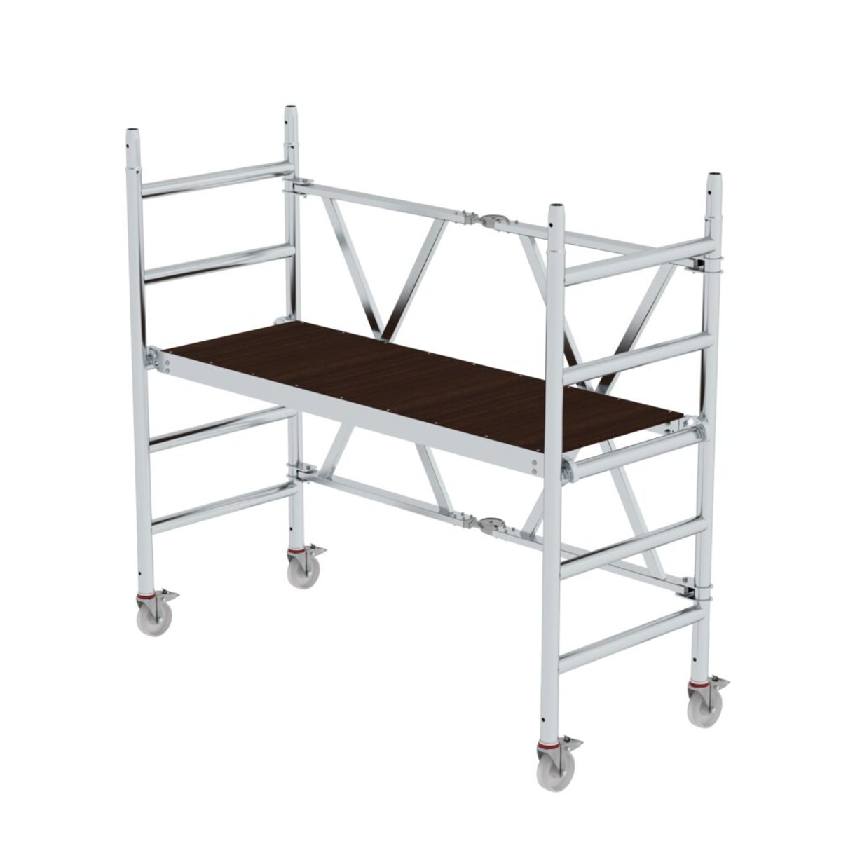 Rollgerüst aus stabilem Aluminium-Rundrohr mit geschweißten Rahmenteilen Klapprahmen aus Rechteckrohr-Holmen mit selbstarretierenden Scharnieren Türengängig im aufgebauten Zustand (Art. 115301) Platzsparend bei Transport und Lagerung Vier Lenkrollen Ø 125 mm mit Feststellern Trittsichere Plattform für festen Stand Lieferung erfolgt in Baugruppen. Einmal montiert, ist das Gerüst schnell und ohne Werkzeug auf- und abgebaut Unterschiedliche Plattformbreiten erhältlich (0,75/1,35 m) Arbeitshöhen bis 3,0 m Baumuster geprüft Lastklasse/Gerüstgruppe 2: 1,5 kN/m²Informationen zu Nachhaltigkeitskriterien Unternehmenszertifizierung: ISO 9001 Unternehmenszertifizierung: EN 1090 Unternehmenszertifizierung: EcoVadis RoHS REACH Die MUNK Group arbeitet mit einem Code of Conduct Das Lieferkettengesetz findet aufgrund unserer Größe keine Anwendung Die verwendeten Materialien sind der technischen Spez…