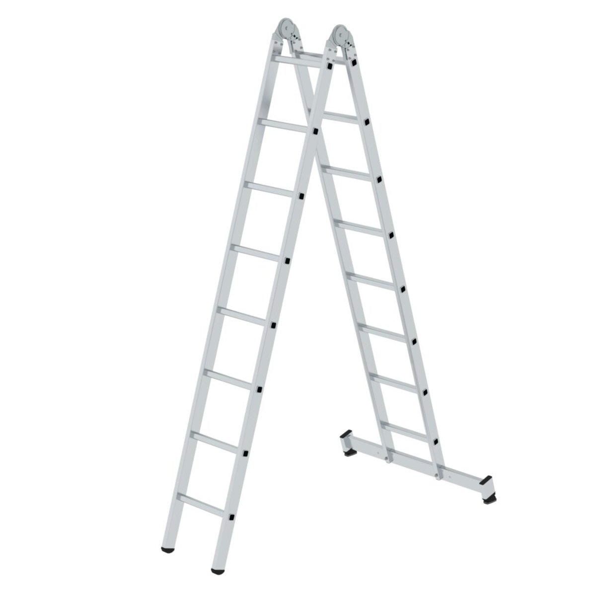 Günzburger Steigtechnik Klappleiter 2-teilig mit nivello®-Traverse 2×8 Sprossen