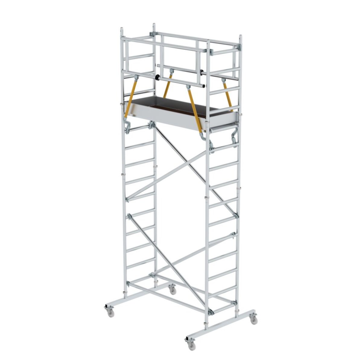 Rollgerüst aus stabilem Aluminium-Rundrohr mit geschweißten Rahmenteilen Dank vorlaufenden Geländern rundum gesichert, von Ebene zu Ebene auf- und abbaubar Alle Gerüstteile sind auch einzeln als Ersatz- oder Erweiterungsteile erhältlich Fahrbalken aus verzinktem Stahl zum einfachen Ortswechsel (Fahrbalkenbreite: 1.500 mm) Vier Lenkrollen Ø 125 mm mit Feststellern Plattformen mit großer Durchstiegsluke Aluminium-Bordbretter und Geländerrahmen mit integrierter Knieleiste zur Absturzsicherung Werkzeugloser Auf- und Abbau von Plattform zu Plattform dank Steckverbindungen und Schnellverschlüssen Geringes Gewicht der Einzelteile für ein einfaches Handling Arbeitshöhen bis 7,2 m GS-geprüft nach DIN EN 1004 Lastklasse/Gerüstgruppe 3: 2,0 kN/m²Informationen zu Nachhaltigkeitskriterien Unternehmenszertifizierung: ISO 9001 Unternehmenszertifizierung: EN 1090 Unternehmenszertifizierung: EcoVadis…