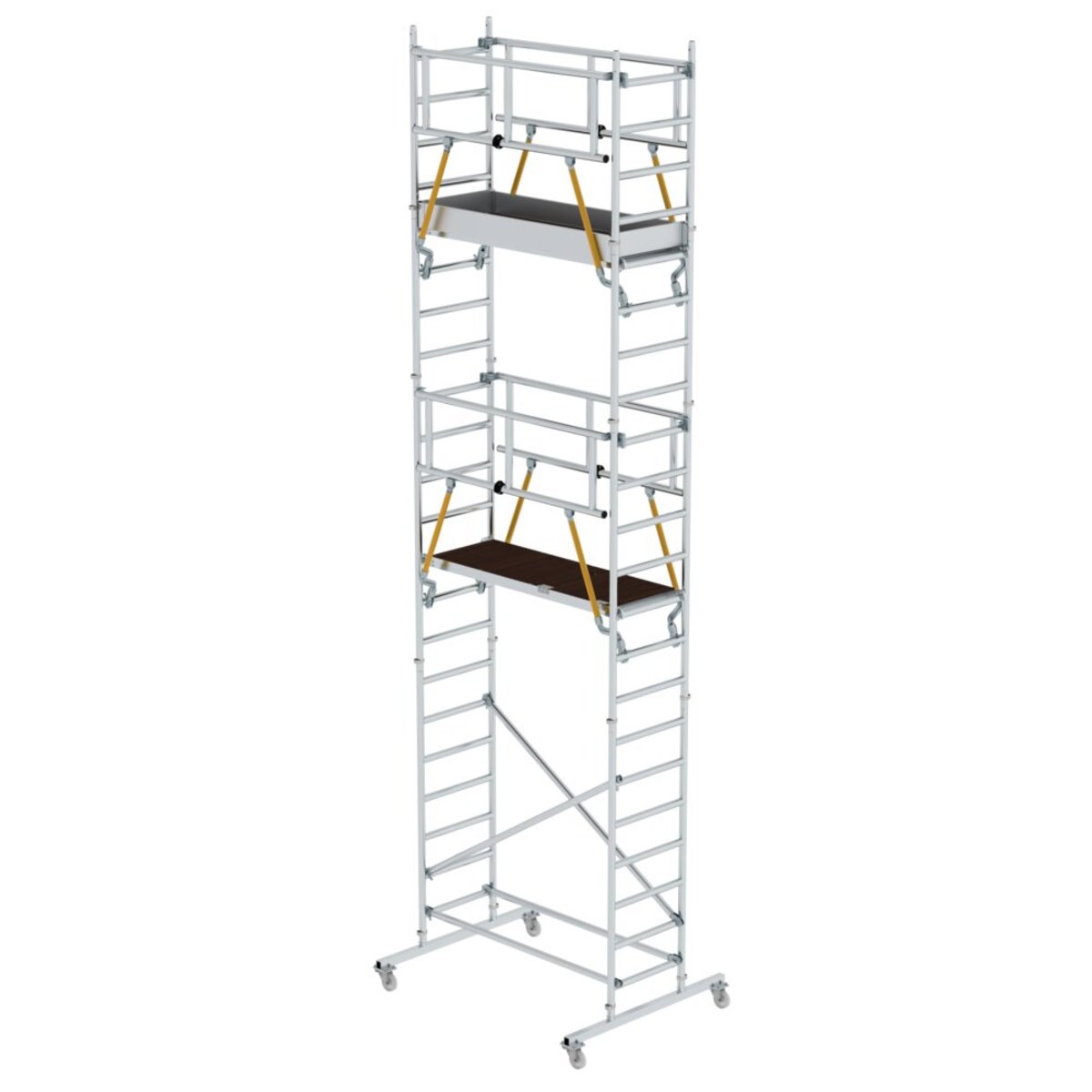 Rollgerüst aus stabilem Aluminium-Rundrohr mit geschweißten Rahmenteilen Dank vorlaufenden Geländern rundum gesichert, von Ebene zu Ebene auf- und abbaubar Alle Gerüstteile sind auch einzeln als Ersatz- oder Erweiterungsteile erhältlich Fahrbalken aus verzinktem Stahl zum einfachen Ortswechsel (Fahrbalkenbreite: 1.500 mm) Vier Lenkrollen Ø 125 mm mit Feststellern Plattformen mit großer Durchstiegsluke Aluminium-Bordbretter und Geländerrahmen mit integrierter Knieleiste zur Absturzsicherung Werkzeugloser Auf- und Abbau von Plattform zu Plattform dank Steckverbindungen und Schnellverschlüssen Geringes Gewicht der Einzelteile für ein einfaches Handling Arbeitshöhen bis 7,2 m GS-geprüft nach DIN EN 1004 Lastklasse/Gerüstgruppe 3: 2,0 kN/m²Informationen zu Nachhaltigkeitskriterien Unternehmenszertifizierung: ISO 9001 Unternehmenszertifizierung: EN 1090 Unternehmenszertifizierung: EcoVadis…