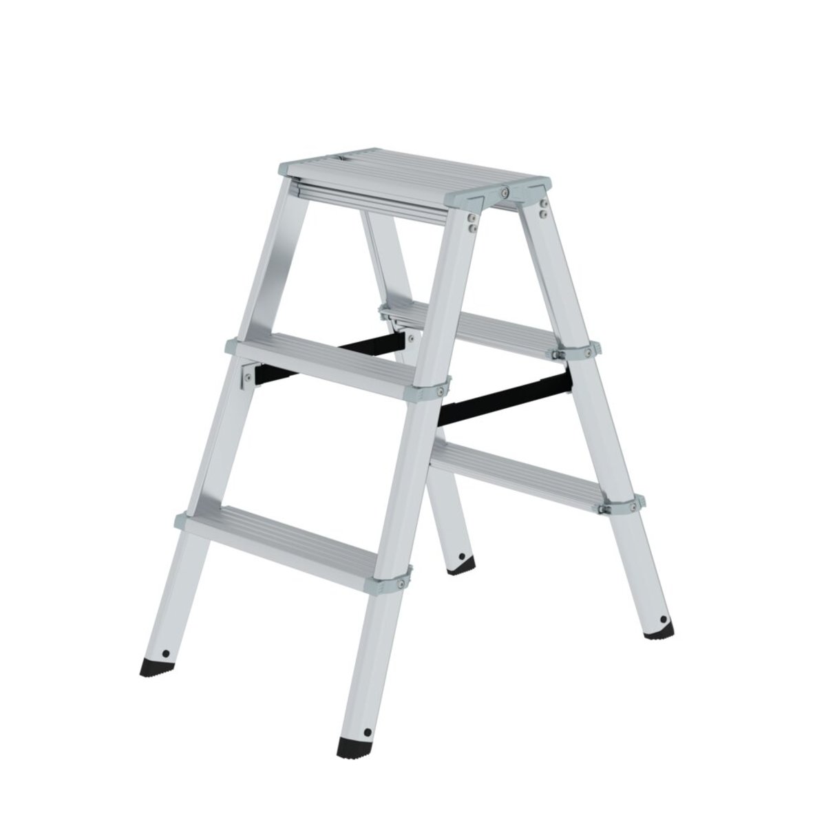 Stufen-Stehleiter aus Aluminium Ergonomisch geformte Leiterholme für leichtes Handling 80 mm tiefe, geriffelte Stufen Hochfest verschraubte Stufen-/Holmverbindung Konische Holmführung für einen sicheren Stand 2-fach verschraubtes, massives Leitergelenk aus Zink-Druckguss Rutschsichere Leiterschuhe Spreizsicherung mit zwei hochfesten Polyestergurten Stufenabstand: 235 mm Leiterneigung: 70° Maximale Belastung: 150 kgInformationen zu Nachhaltigkeitskriterien Unternehmenszertifizierung: ISO 9001 Unternehmenszertifizierung: EN 1090 Unternehmenszertifizierung: EcoVadis RoHS REACH Die MUNK Group arbeitet mit einem Code of Conduct Das Lieferkettengesetz findet aufgrund unserer Größe keine Anwendung Die verwendeten Materialien sind der technischen Spezifikation aufgeführt Ressourcenschonende Herstellung: eigene Photovoltaik-Anlagen Energieeffizienter Verbrauch bei der Herstellung: LED-Beleuch…