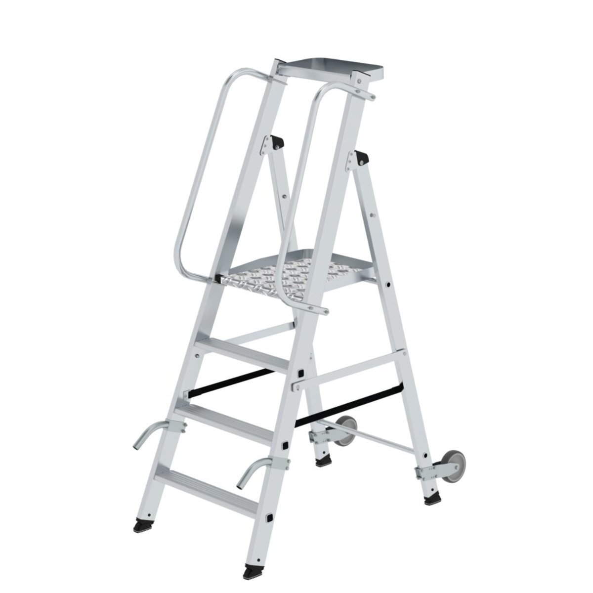 Günzburger Steigtechnik Plattformleiter mit Rollen und Griff 4 Stufen mit Ablageschale