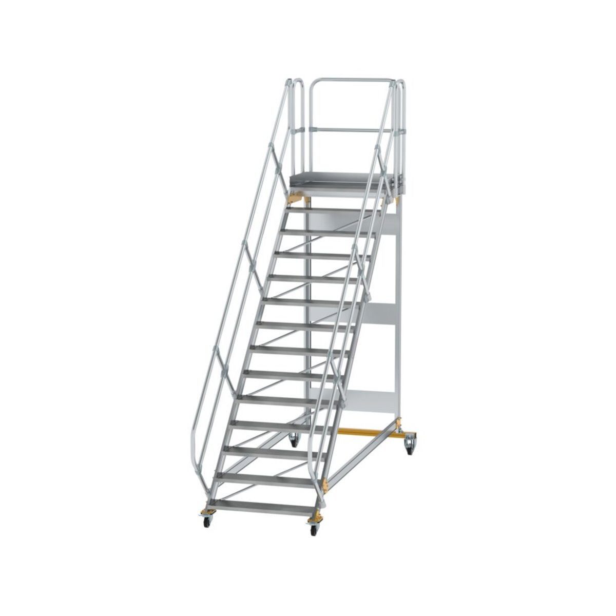 Günzburger Steigtechnik Plattformtreppe 45° fahrbar Stufenbreite 1000mm 14 Stufen Aluminium geriffelt