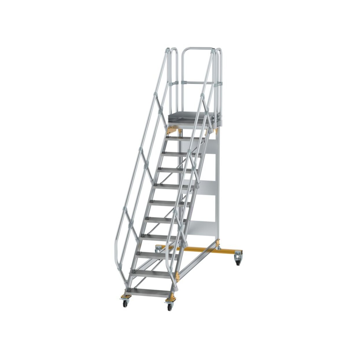 Günzburger Steigtechnik Plattformtreppe 45° fahrbar Stufenbreite 600 mm 11 Stufen Aluminium geriffelt