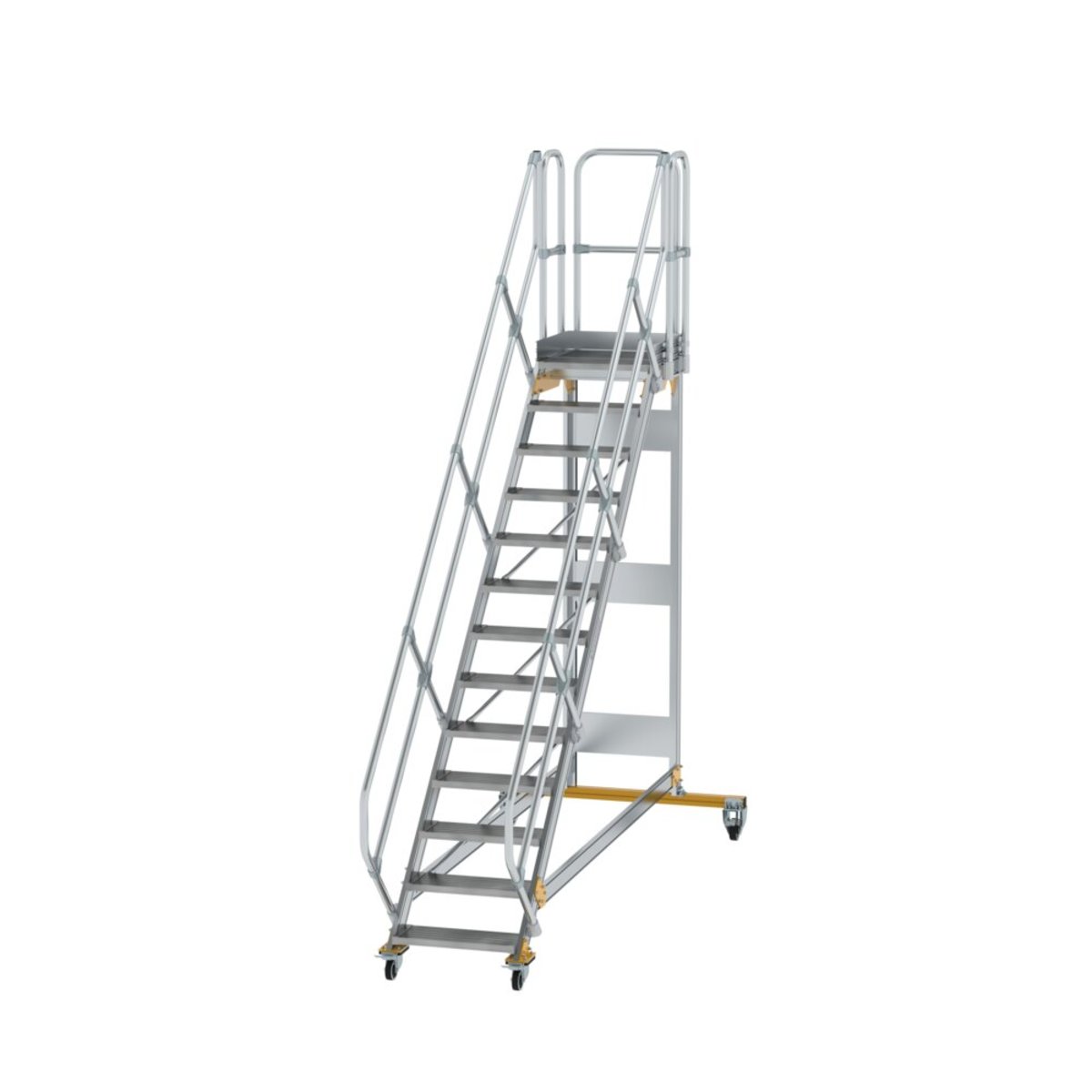 Günzburger Steigtechnik Plattformtreppe 45° fahrbar Stufenbreite 600 mm 13 Stufen Aluminium geriffelt