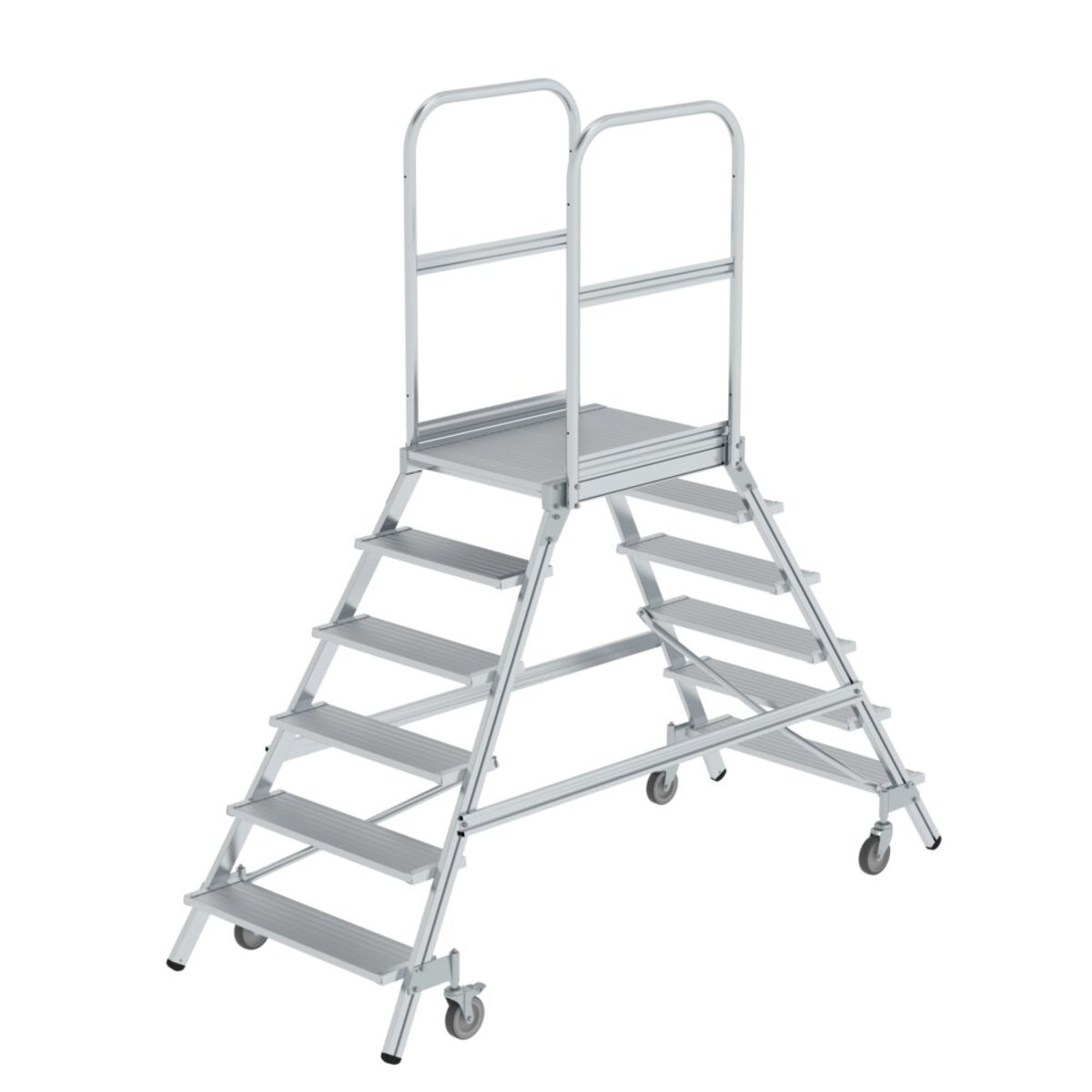 Günzburger Steigtechnik Podesttreppe beidseitig begehbar mit Federrollen Aluminium geriffelt 6 Stufen