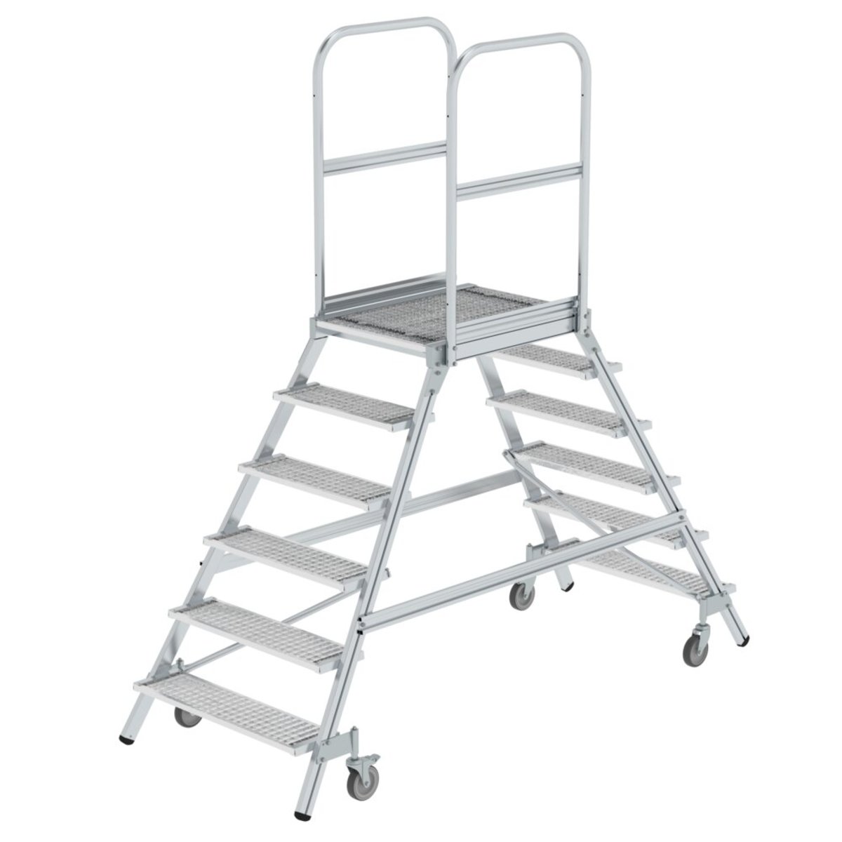 Günzburger Steigtechnik Podesttreppe beidseitig begehbar mit Federrollen Stahl Gitterrost 6 Stufen