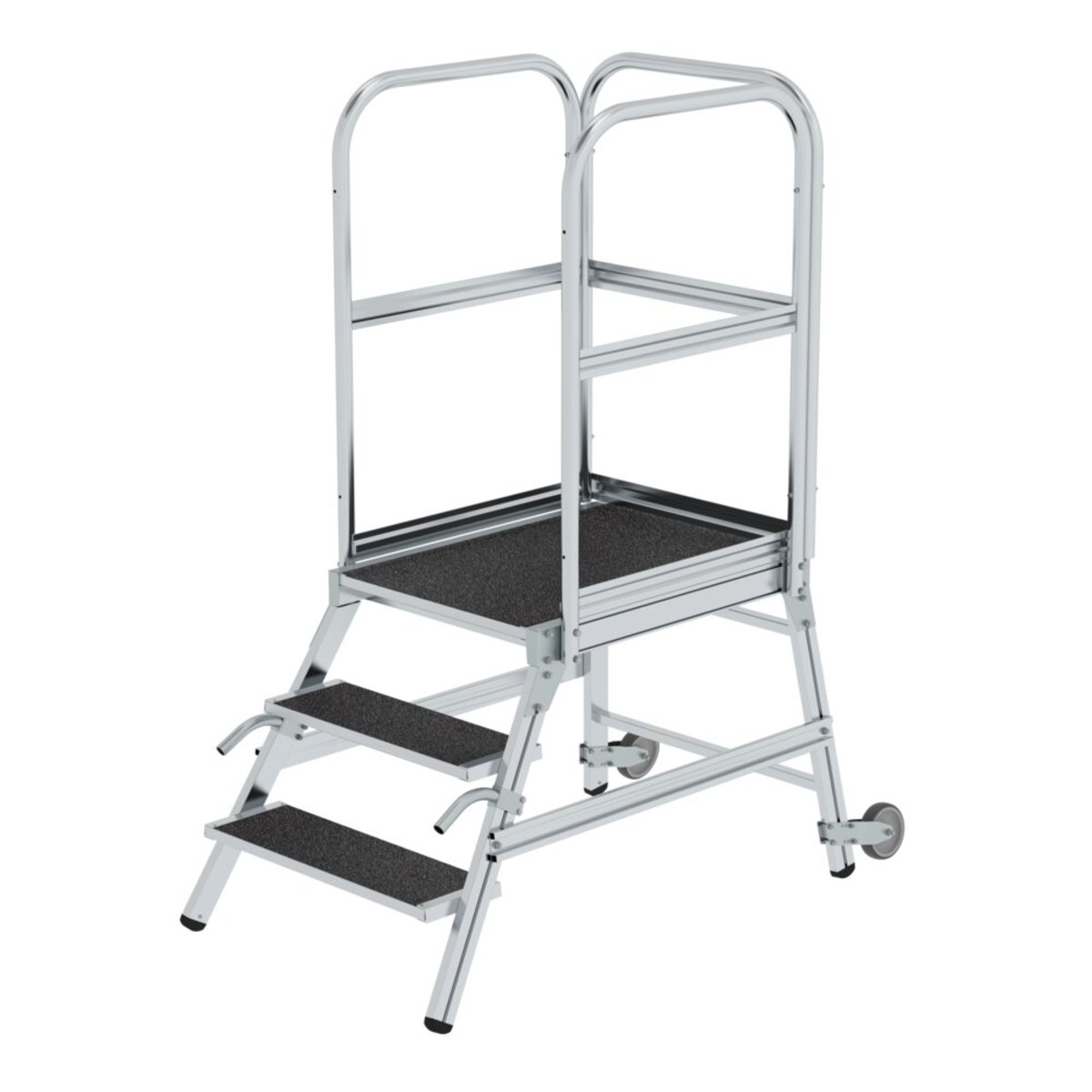 Günzburger Steigtechnik Podesttreppe einseitig begehbar mit Rollen & Griffen Korrundbesch. R13 3 Stufen