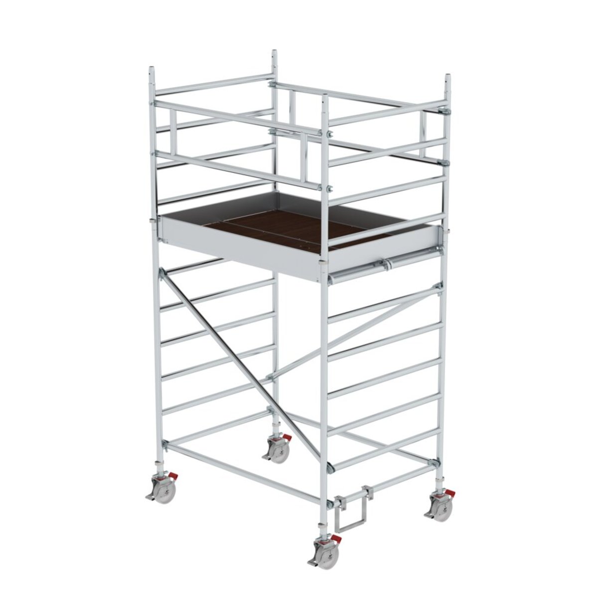 Rollgerüst aus stabilem Aluminium-Rundrohr mit geschweißten Rahmenteilen Großformatige Arbeitsfläche mit 1,35 m Breite Alle Gerüstteile sind auch einzeln als Ersatz- oder Erweiterungsteile erhältlich Vier Lenkrollen Ø 200 mm mit zentrischer Lasteinleitung, Feststellern und Spindeln Aluminium-Bordbretter und Geländerrahmen mit integrierter Knieleiste zur Absturzsicherung Werkzeugloser Auf- und Abbau dank Steckverbindungen und Schnellverschlüssen Geringes Gewicht der Einzelteile für ein einfaches Handling Unterschiedliche Plattformlängen erhältlich (1,80 / 2,45 / 3,0 m) Arbeitshöhen bis 13,45 m GS-geprüft nach DIN EN 1004 Lastklasse/Gerüstgruppe 3: 2,0 kN/m² Um die Anforderungen der DIN EN 1004-1:2021 zu erfüllen, muss dieses Gerüst umgerüstet werden Möglichkeit 1 – Umrüstung auf MSG: 2 Montagesicherungsgeländer (Bestell-Nr. 027991) sind für einen sicheren Auf-, Ab- und Umbau erforderl…