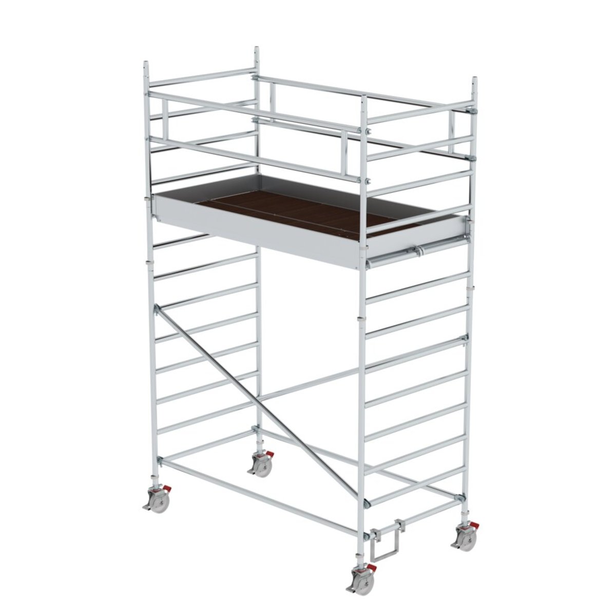 Rollgerüst aus stabilem Aluminium-Rundrohr mit geschweißten Rahmenteilen Großformatige Arbeitsfläche mit 1,35 m Breite Alle Gerüstteile sind auch einzeln als Ersatz- oder Erweiterungsteile erhältlich Vier Lenkrollen Ø 200 mm mit zentrischer Lasteinleitung, Feststellern und Spindeln Aluminium-Bordbretter und Geländerrahmen mit integrierter Knieleiste zur Absturzsicherung Werkzeugloser Auf- und Abbau dank Steckverbindungen und Schnellverschlüssen Geringes Gewicht der Einzelteile für ein einfaches Handling Unterschiedliche Plattformlängen erhältlich (1,80 / 2,45 / 3,0 m) Arbeitshöhen bis 13,45 m GS-geprüft nach DIN EN 1004 Lastklasse/Gerüstgruppe 3: 2,0 kN/m² Um die Anforderungen der DIN EN 1004-1:2021 zu erfüllen, muss dieses Gerüst umgerüstet werden Möglichkeit 1 – Umrüstung auf MSG: 2 Montagesicherungsgeländer (Bestell-Nr. 027991) sind für einen sicheren Auf-, Ab- und Umbau erforderl…