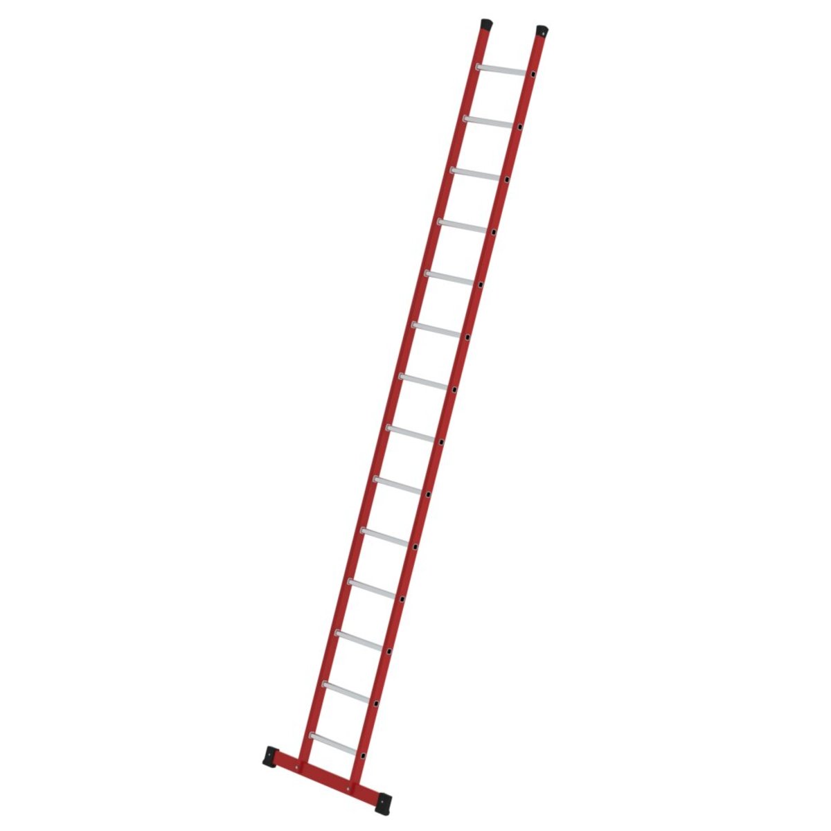 Sprossen-Anlegeleiter aus GFK/Alu Holme aus glasfaserverstärkten Kunststoff-Profilen (mind. 10 Jahre Alterungsbeständigkeit) Beidseitig geriffelte Vierkantsprossen 30 x 30 mm aus Aluminium 4-fach gebördelte Sprossen-/Holmverbindung Sprossenabstand: 280 mm Leiterbreite: 420 mm (ohne Traverse) Maximale Belastung: 150 kg Geeignet für das Arbeiten in der Nähe von oder an unter Spannung stehenden Teilen Geprüft bis 1.000 Volt nach DIN EN 61478:2002 Abschnitt 6.5.1 und A1:2004 Kategorie 1 (entspricht europäischer Norm DIN EN 131-7) GFK-Traverse mit rutschsicheren Leiterschuhen in optimaler Breite zum gewählten Produkt Hinweis: Produkte mit GFK-Anteil sind aufgrund ihrer Sensibilität vom Umtausch ausgeschlossen, es gilt die gesetzliche Gewähleistung (Alterungsbeständigkeit 10 Jahre)Informationen zu Nachhaltigkeitskriterien Unternehmenszertifizierung: ISO 9001 Unternehmenszertifizierung: EN …