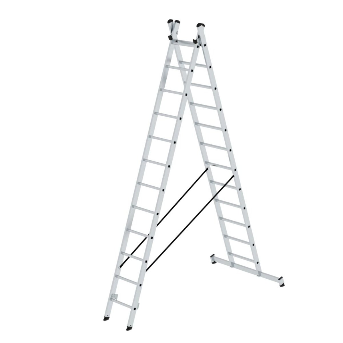 Sprossen-Mehrzweckleiter aus Aluminium Stabile Rechteckrohr-Holme Beidseitig geriffelte Vierkantsprossen 30 x 30 mm 4-fach gebördelte Sprossen-/Holmverbindung Einsetzbar als Steh-, Anlege- und Schiebeleiter Einfache Höhenverstellung dank Steckhaken mit Abhebesicherung Korrosionsbeständige Führungsbeschläge nivello® Leiterschuhe und nivello® Traverse (liegt lose bei) Spreizsicherung mit zwei hochfesten Polyestergurten Sprossenabstand: 280 mm Leiterbreite: 490 mm (ohne Traverse) Maximale Belastung: 150 kgInformationen zu Nachhaltigkeitskriterien Unternehmenszertifizierung: ISO 9001 Unternehmenszertifizierung: EN 1090 Unternehmenszertifizierung: EcoVadis RoHS REACH Die MUNK Group arbeitet mit einem Code of Conduct Das Lieferkettengesetz findet aufgrund unserer Größe keine Anwendung Die verwendeten Materialien sind der technischen Spezifikation aufgeführt Ressourcenschonende Herstellung:…