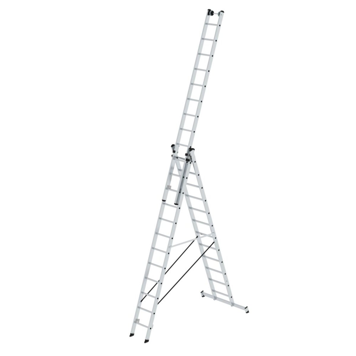 Günzburger Steigtechnik Sprossen-Mehrzweckleiter 3-teilig mit nivello®-Traverse und Wandlaufrollen 3×12 Sprossen