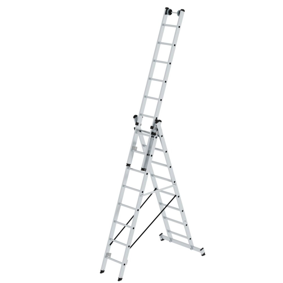 Sprossen-Mehrzweckleiter aus Aluminium Stabile Rechteckrohr-Holme Beidseitig geriffelte Vierkantsprossen 30 x 30 mm 4-fach gebördelte Sprossen-/Holmverbindung Einsetzbar als Steh-, Anlege- und Schiebeleiter Treppengängig bei Leiterlänge bis 3,0 m Einfache Höhenverstellung von Sprosse zu Sprosse dank Steckhaken mit automatisch einrastender Abhebesicherung Oberleiter mit Wandlaufrollen nivello® Leiterschuhe und nivello® Traverse (liegt lose bei) Spreizsicherung mit zwei hochfesten Polyestergurten und lösbarer Metallstrebe Sprossenabstand: 280 mm Leiterbreite: 490 mm (ohne Traverse) Maximale Belastung: 150 kgInformationen zu Nachhaltigkeitskriterien Unternehmenszertifizierung: ISO 9001 Unternehmenszertifizierung: EN 1090 Unternehmenszertifizierung: EcoVadis RoHS REACH Die MUNK Group arbeitet mit einem Code of Conduct Das Lieferkettengesetz findet aufgrund unserer Größe keine Anwendung D…
