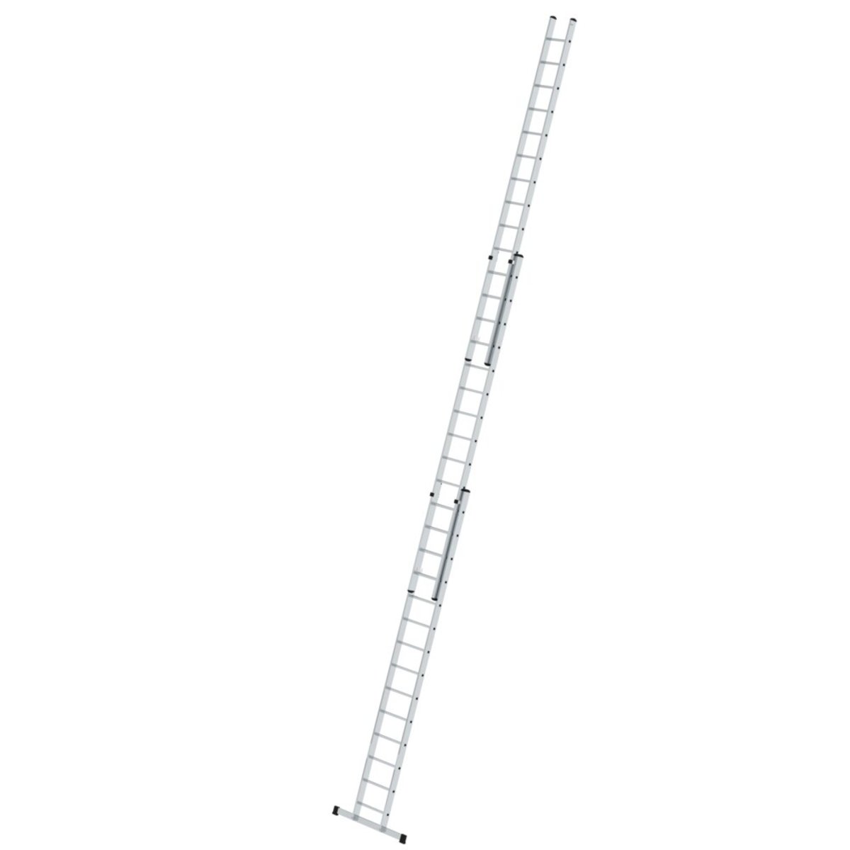 Sprossen-Schiebeleiter aus Aluminium Stabile Rechteckrohr-Holme Beidseitig geriffelte Vierkantsprossen 30 x 30 mm 4-fach gebördelte Sprossen-/Holmverbindung Einfache Höhenverstellung von Sprosse zu Sprosse dank Steckhaken mit automatisch einrastender Abhebesicherung Oberleiter ab Größe 2 x 14 Sprossen mit Wandlaufrollen Korrosionsbeständige Führungsbeschläge Mittel- und Oberleitern bis 3,0 m mit nivello® Leiterschuhen Sprossenabstand: 280 mm Leiterbreite: 500 mm (ohne Traverse) Maximale Belastung: 150 kg Standard-Traverse mit rutschsicheren Leiterschuhen in optimaler Breite zum gewählten Produkt für einen sicheren Stand und Aufstieg bei Anlegeleitern über 3,0 m. Die Traverse liegt lose bei und wird zweifach am unteren Holmende verschraubt Hinweis: Nach Norm ist das aufgesetzte Schiebeleiterteil bei Längen über 3,0 m nicht von der Leiter trennbarInformationen zu Nachhaltigkeitskriteri…