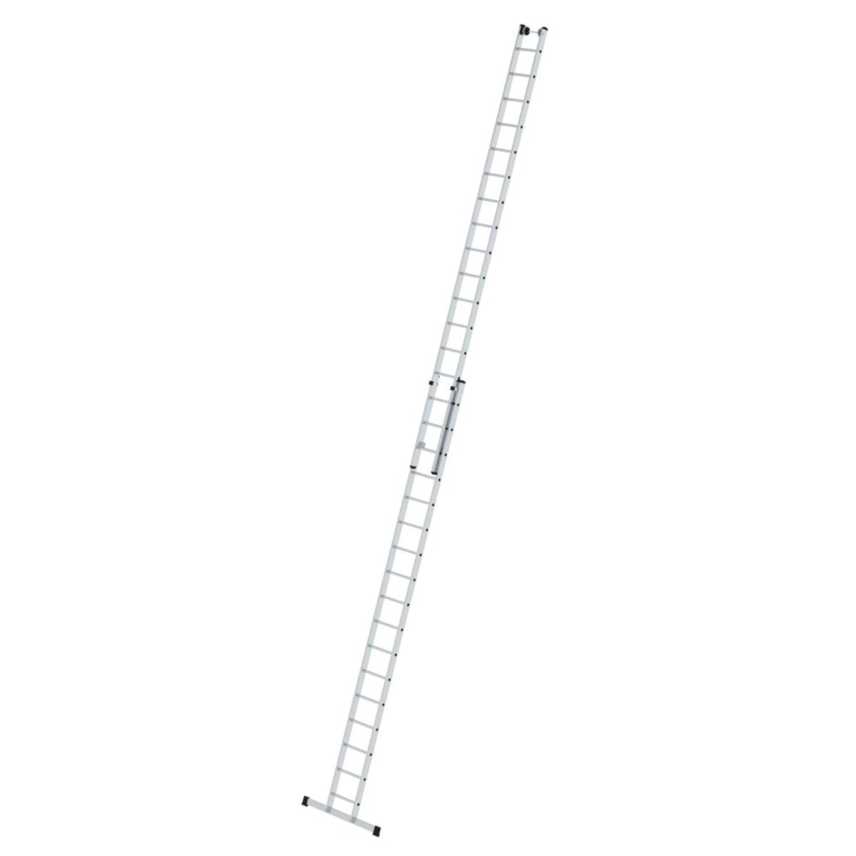 Sprossen-Schiebeleiter aus Aluminium Stabile Rechteckrohr-Holme Beidseitig geriffelte Vierkantsprossen 30 x 30 mm 4-fach gebördelte Sprossen-/Holmverbindung Einfache Höhenverstellung von Sprosse zu Sprosse dank Steckhaken mit automatisch einrastender Abhebesicherung Oberleiter ab Größe 2 x 14 Sprossen mit Wandlaufrollen Korrosionsbeständige Führungsbeschläge Oberleitern bis 3,0 m mit nivello® Leiterschuhen Sprossenabstand: 280 mm Leiterbreite: 420 mm (ohne Traverse) Maximale Belastung: 150 kg Standard-Traverse mit rutschsicheren Leiterschuhen in optimaler Breite zum gewählten Produkt für einen sicheren Stand und Aufstieg bei Anlegeleitern über 3,0 m. Die Traverse liegt lose bei und wird zweifach am unteren Holmende verschraubt Hinweis: Nach Norm ist das aufgesetzte Schiebeleiterteil bei Längen über 3,0 m nicht von der Leiter trennbarInformationen zu Nachhaltigkeitskriterien Unternehm…