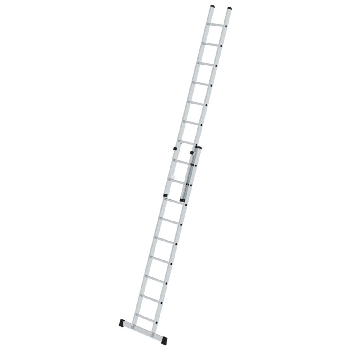 Sprossen-Schiebeleiter aus Aluminium Stabile Rechteckrohr-Holme Beidseitig geriffelte Vierkantsprossen 30 x 30 mm 4-fach gebördelte Sprossen-/Holmverbindung Einfache Höhenverstellung von Sprosse zu Sprosse dank Steckhaken mit automatisch einrastender Abhebesicherung Oberleiter ab Größe 2 x 14 Sprossen mit Wandlaufrollen Korrosionsbeständige Führungsbeschläge Oberleitern bis 3,0 m mit nivello® Leiterschuhen Sprossenabstand: 280 mm Leiterbreite: 420 mm (ohne Traverse) Maximale Belastung: 150 kg Standard-Traverse mit rutschsicheren Leiterschuhen in optimaler Breite zum gewählten Produkt für einen sicheren Stand und Aufstieg bei Anlegeleitern über 3,0 m. Die Traverse liegt lose bei und wird zweifach am unteren Holmende verschraubt Hinweis: Nach Norm ist das aufgesetzte Schiebeleiterteil bei Längen über 3,0 m nicht von der Leiter trennbarInformationen zu Nachhaltigkeitskriterien Unternehm…