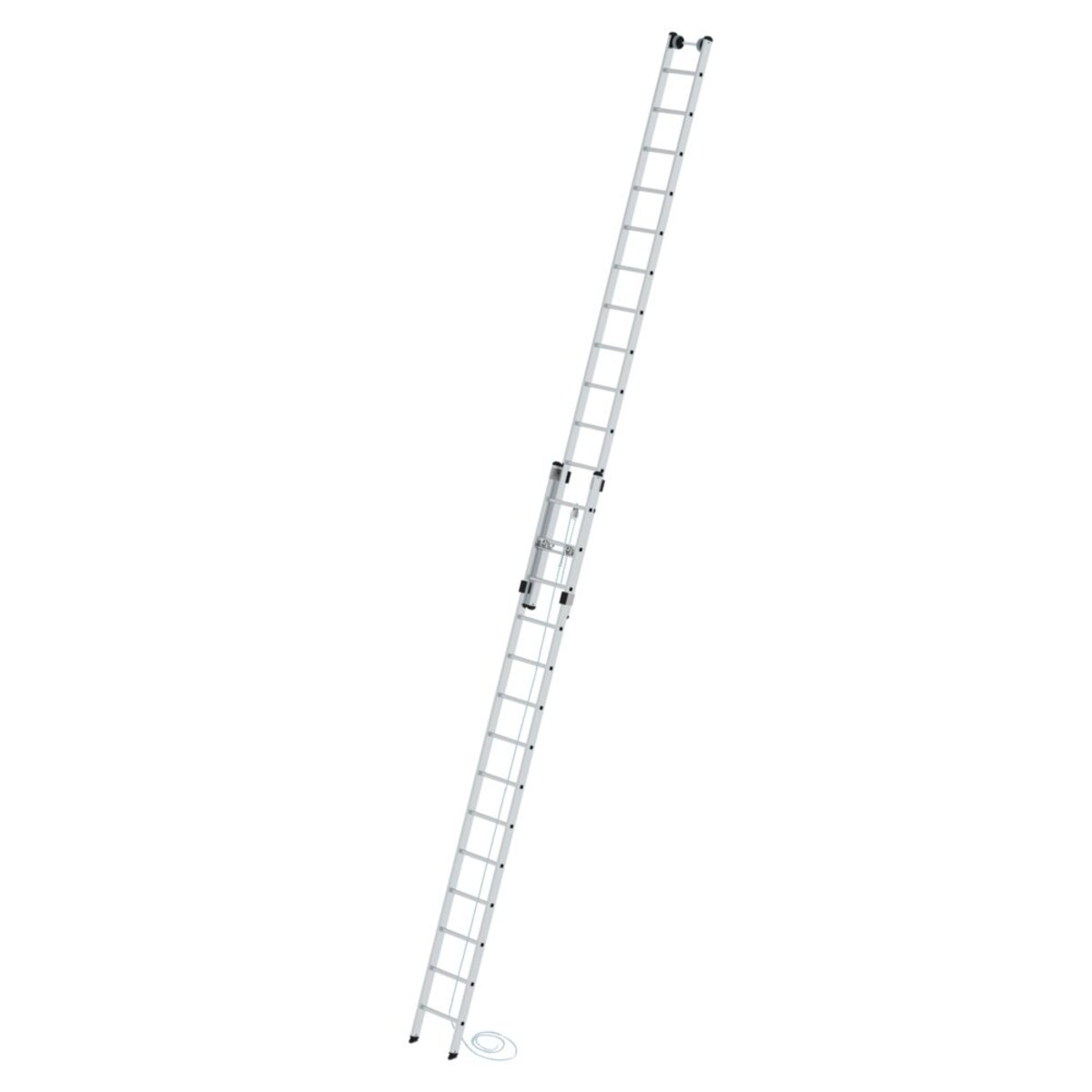 Sprossen-Seilzugleiter aus Aluminium Stabile Rechteckrohr-Holme Beidseitig geriffelte Vierkantsprossen 30 x 30 mm 4-fach gebördelte Sprossen-/Holmverbindung Bequeme Höhenverstellung von Sprosse zu Sprosse dank zwei Seilzügen mit Kunststoffseil Oberleiter mit Wandlaufrollen Korrosionsbeständige Führungsbeschläge mit Gleitführungen Sprossenabstand: 280 mm Leiterbreite: 470 mm (ohne Traverse) Maximale Belastung: 150 kg Hinweis: Anlegeleitern über 3,0 m dürfen nur dann ohne Traverse verwendet werden, wenn diese ausschließlich bestimmungsgemäß eingesetzt werden (z. B. fest eingebaut, mit Haken versehen, mit Gurt befestigt) nivello® Leiterschuhe mit patentierter 2-Achsen-NeigungstechnikInformationen zu Nachhaltigkeitskriterien Unternehmenszertifizierung: ISO 9001 Unternehmenszertifizierung: EN 1090 Unternehmenszertifizierung: EcoVadis RoHS REACH Die MUNK Group arbeitet mit einem Code of Co…