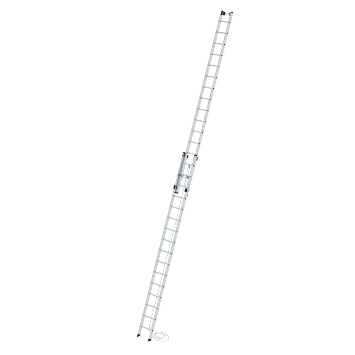 Sprossen-Seilzugleiter aus Aluminium Stabile Rechteckrohr-Holme Beidseitig geriffelte Vierkantsprossen 30 x 30 mm 4-fach gebördelte Sprossen-/Holmverbindung Bequeme Höhenverstellung von Sprosse zu Sprosse dank zwei Seilzügen mit Kunststoffseil Oberleiter mit Wandlaufrollen Korrosionsbeständige Führungsbeschläge mit Gleitführungen Sprossenabstand: 280 mm Leiterbreite: 470 mm (ohne Traverse) Maximale Belastung: 150 kg Hinweis: Anlegeleitern über 3,0 m dürfen nur dann ohne Traverse verwendet werden, wenn diese ausschließlich bestimmungsgemäß eingesetzt werden (z. B. fest eingebaut, mit Haken versehen, mit Gurt befestigt) nivello® Leiterschuhe mit patentierter 2-Achsen-NeigungstechnikInformationen zu Nachhaltigkeitskriterien Unternehmenszertifizierung: ISO 9001 Unternehmenszertifizierung: EN 1090 Unternehmenszertifizierung: EcoVadis RoHS REACH Die MUNK Group arbeitet mit einem Code of Co…