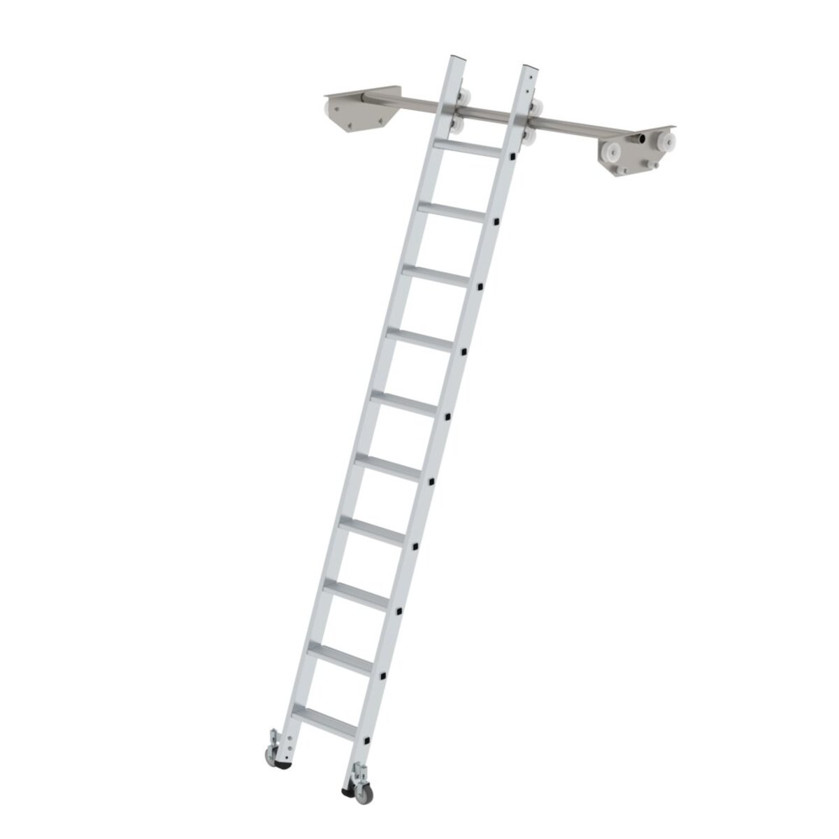 Günzburger Steigtechnik Stufen-Regalleiter fahrbar für Doppelregal 10 Stufen