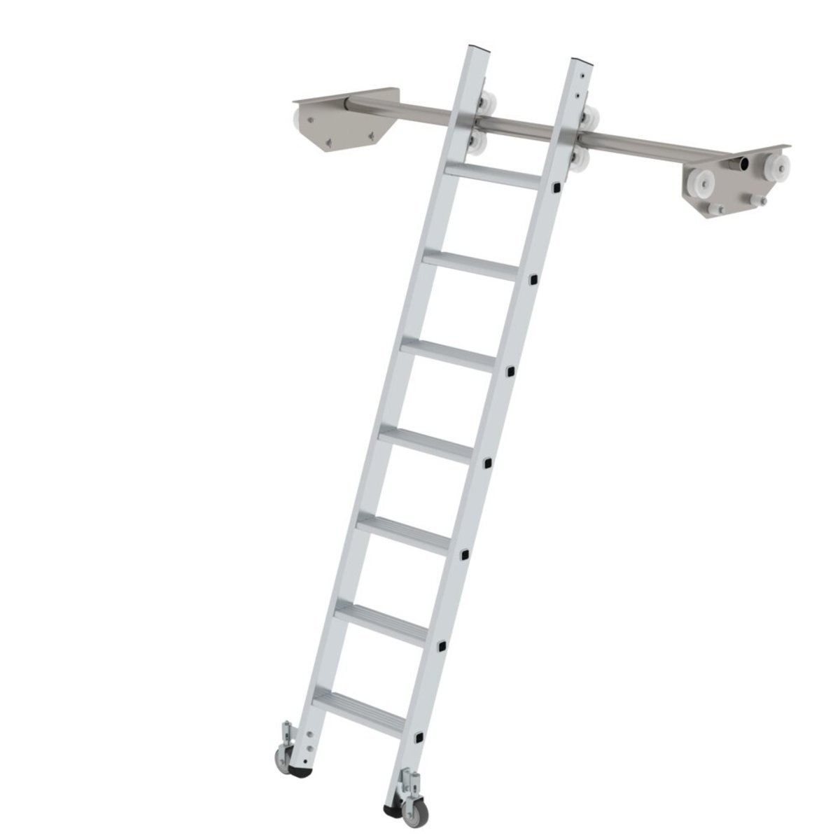 Günzburger Steigtechnik Stufen-Regalleiter fahrbar für Doppelregal 7 Stufen