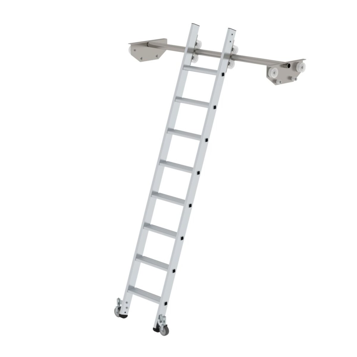 Günzburger Steigtechnik Stufen-Regalleiter fahrbar für Doppelregal 8 Stufen