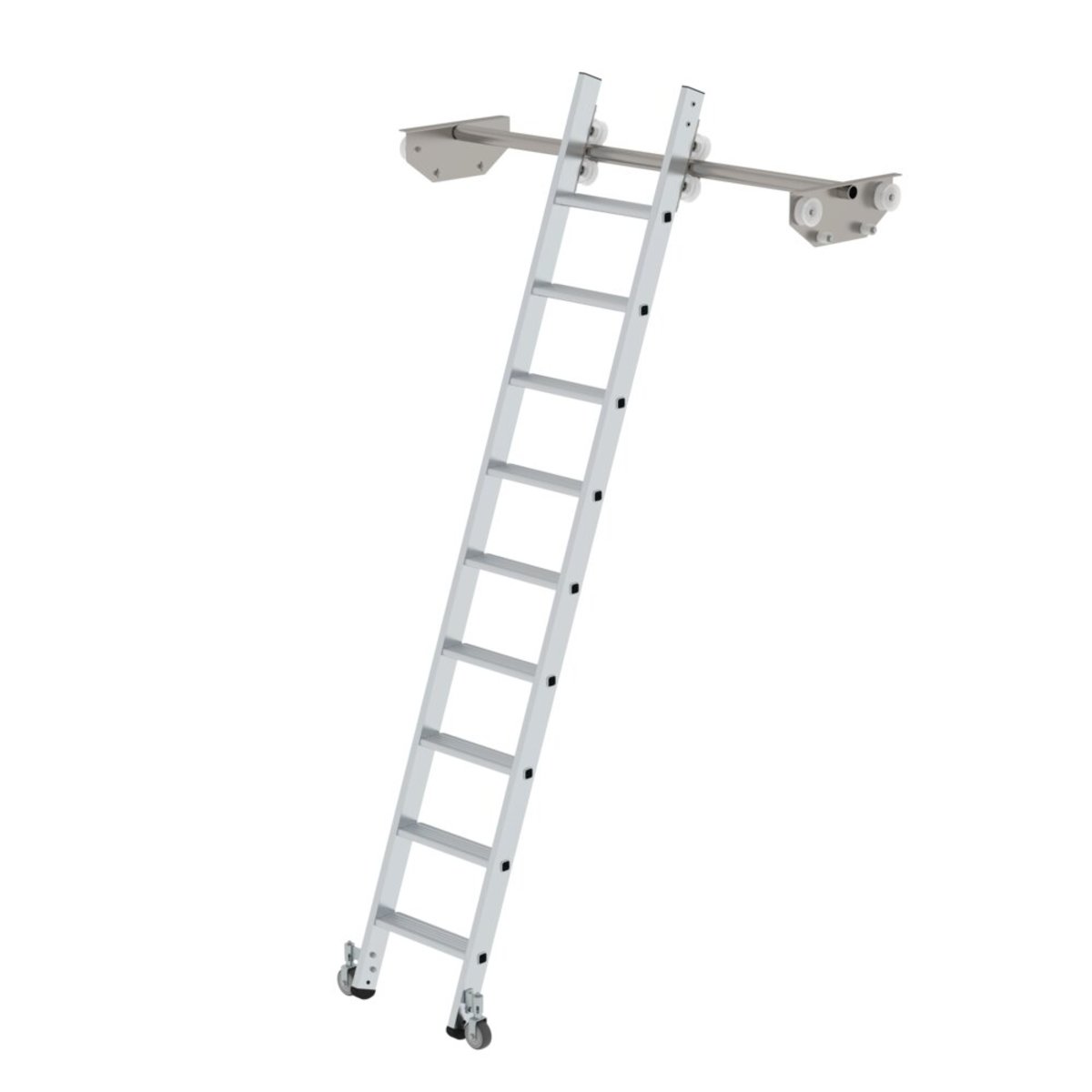 Günzburger Steigtechnik Stufen-Regalleiter fahrbar für Doppelregal 9 Stufen