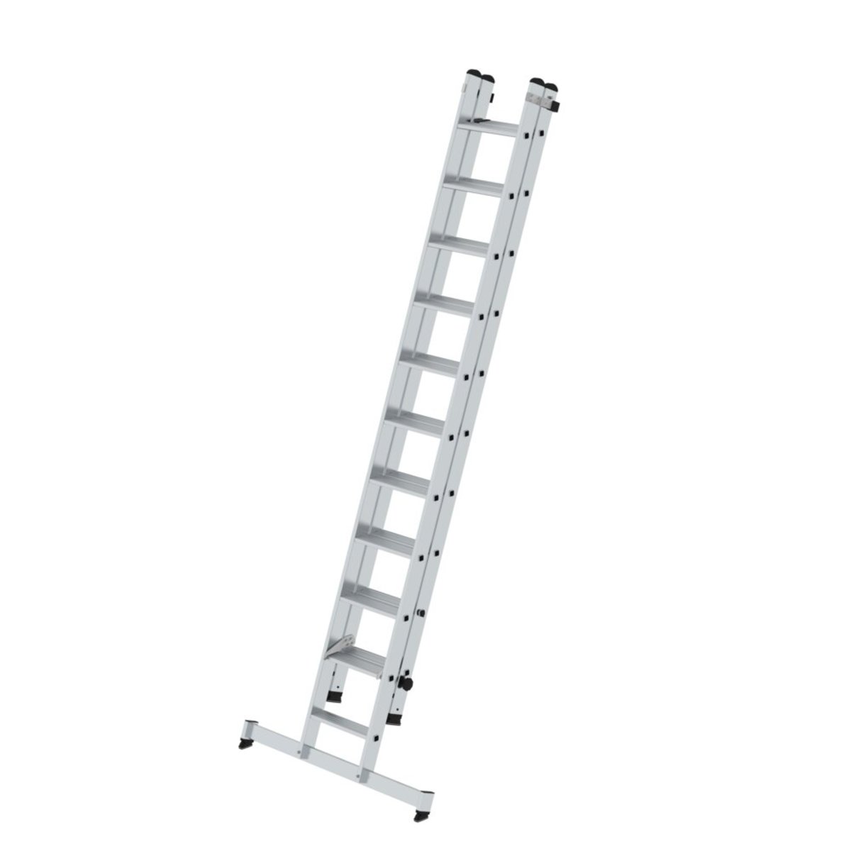 Günzburger Steigtechnik Stufen-Schiebeleiter 2-teilig mit nivello®-Traverse 1×11 + 1×10 Stufen